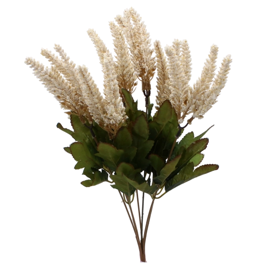 Detailně zpracované květní klasy a listy působí věrohodně na pohled i zblízka, takže skvěle nahradí živé rostliny v interiéru.
