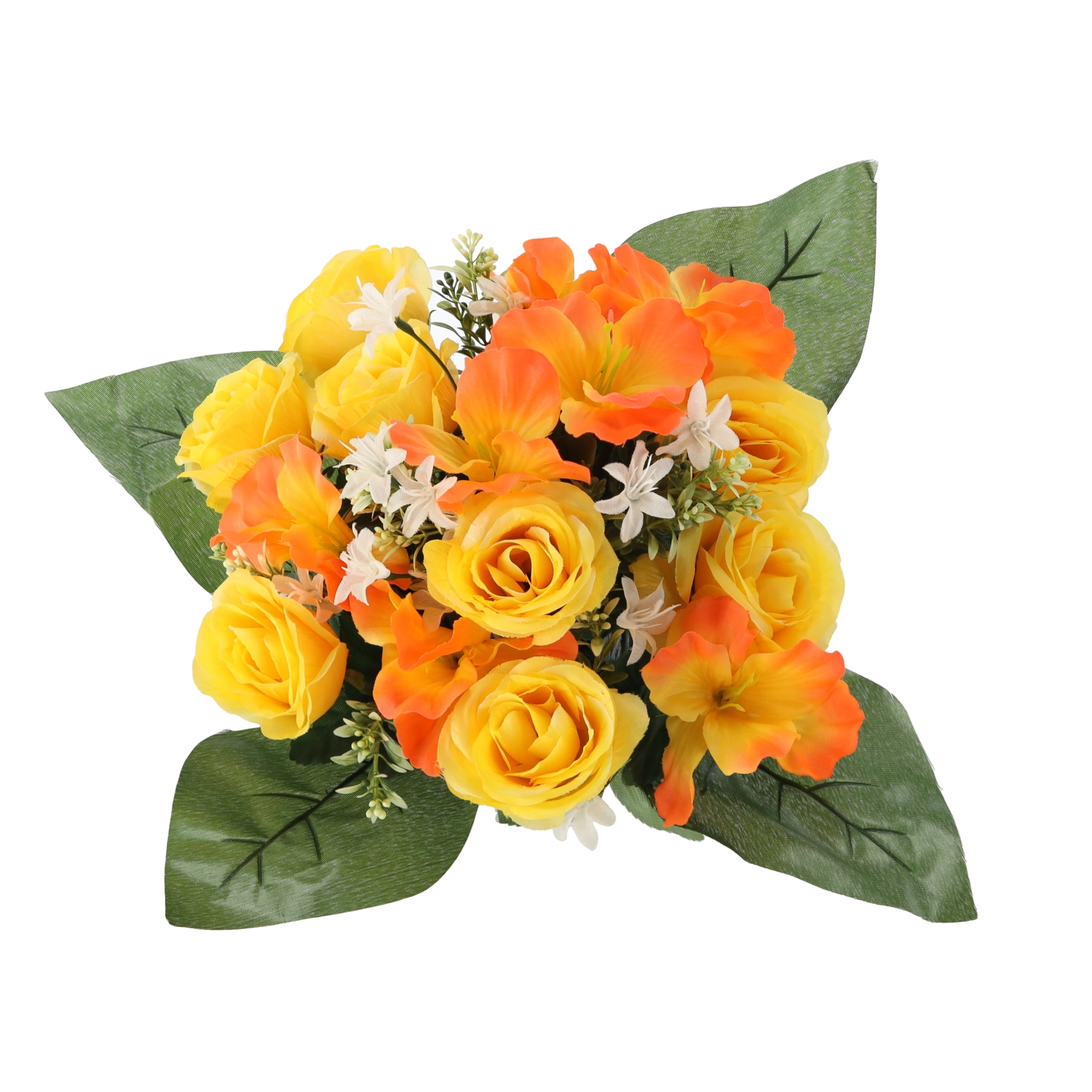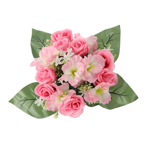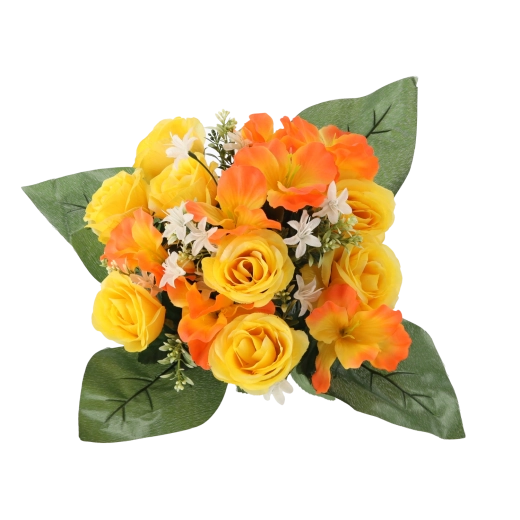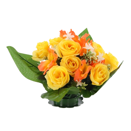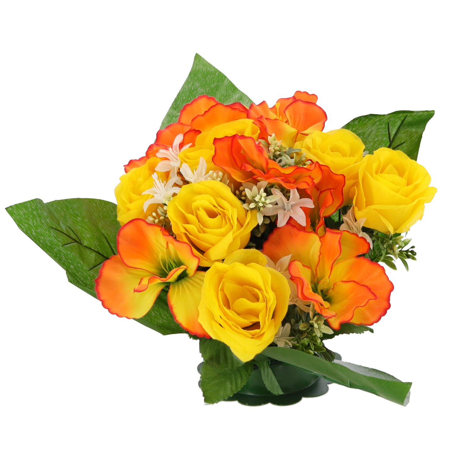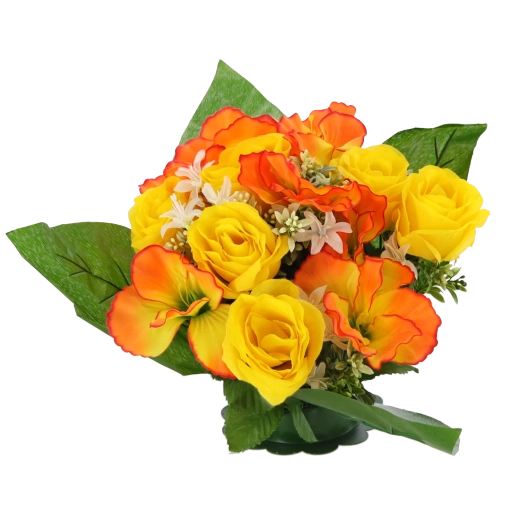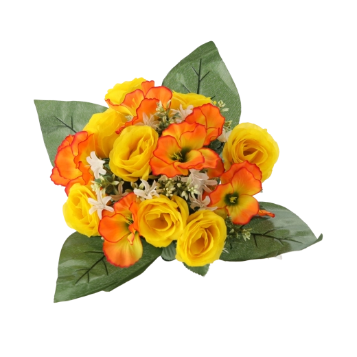 Vneste do domova či kanceláře svěží nádech květin bez starostí. Umělá kytice s růžemi a ibiškem vyniká věrným vzhledem okvětních lístků a listů, stabilním tvarem a sytými barvami, které nevyblednou. Kompaktní velikost se perfektně hodí na stůl, komodu, recepci i místo vzpomínky.