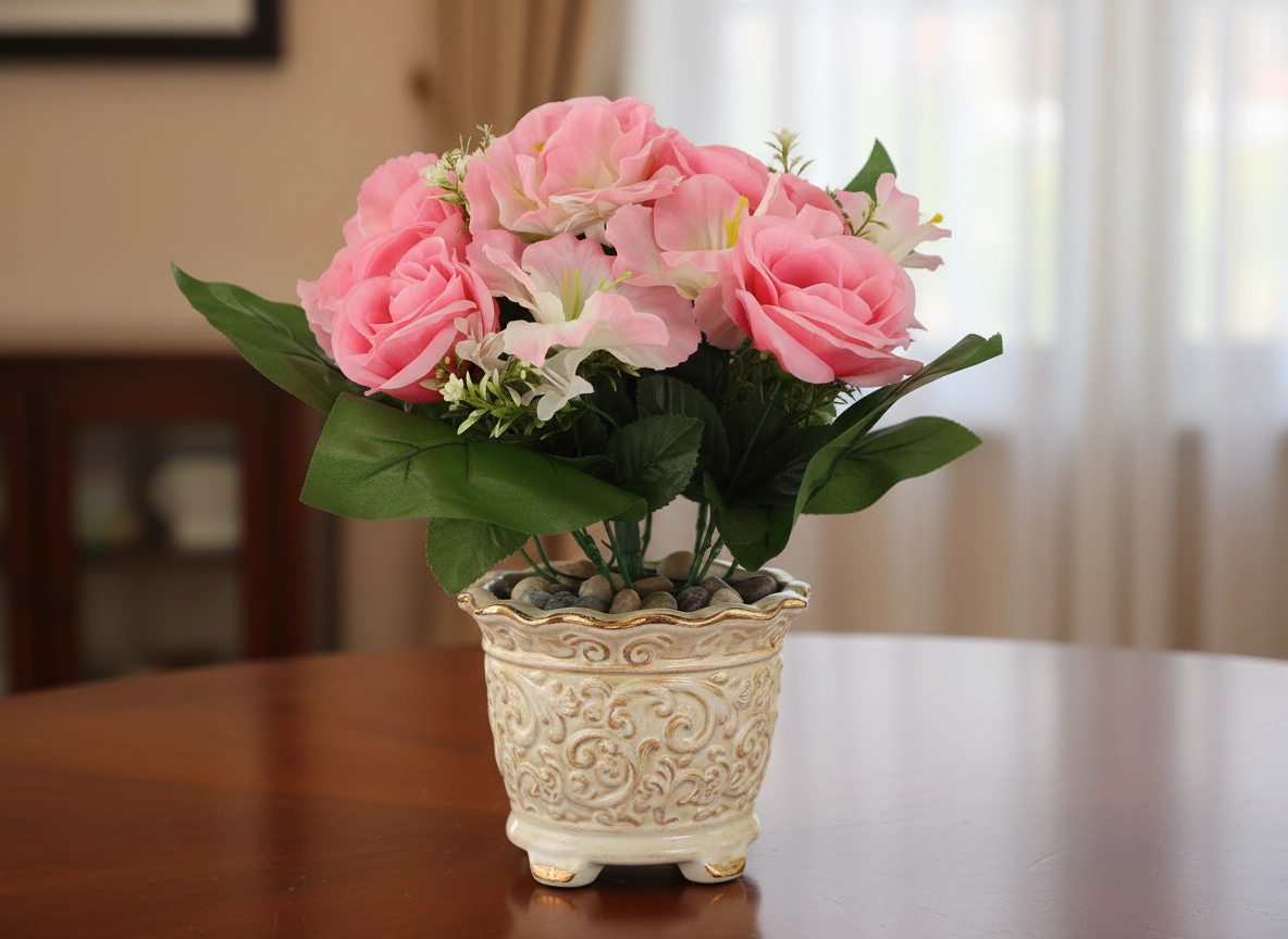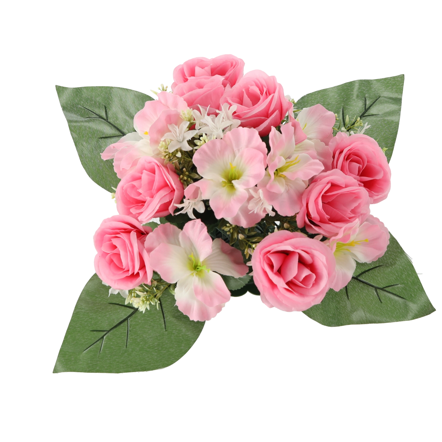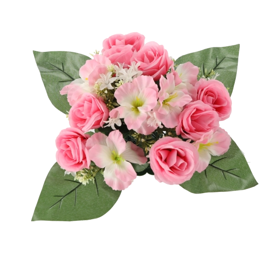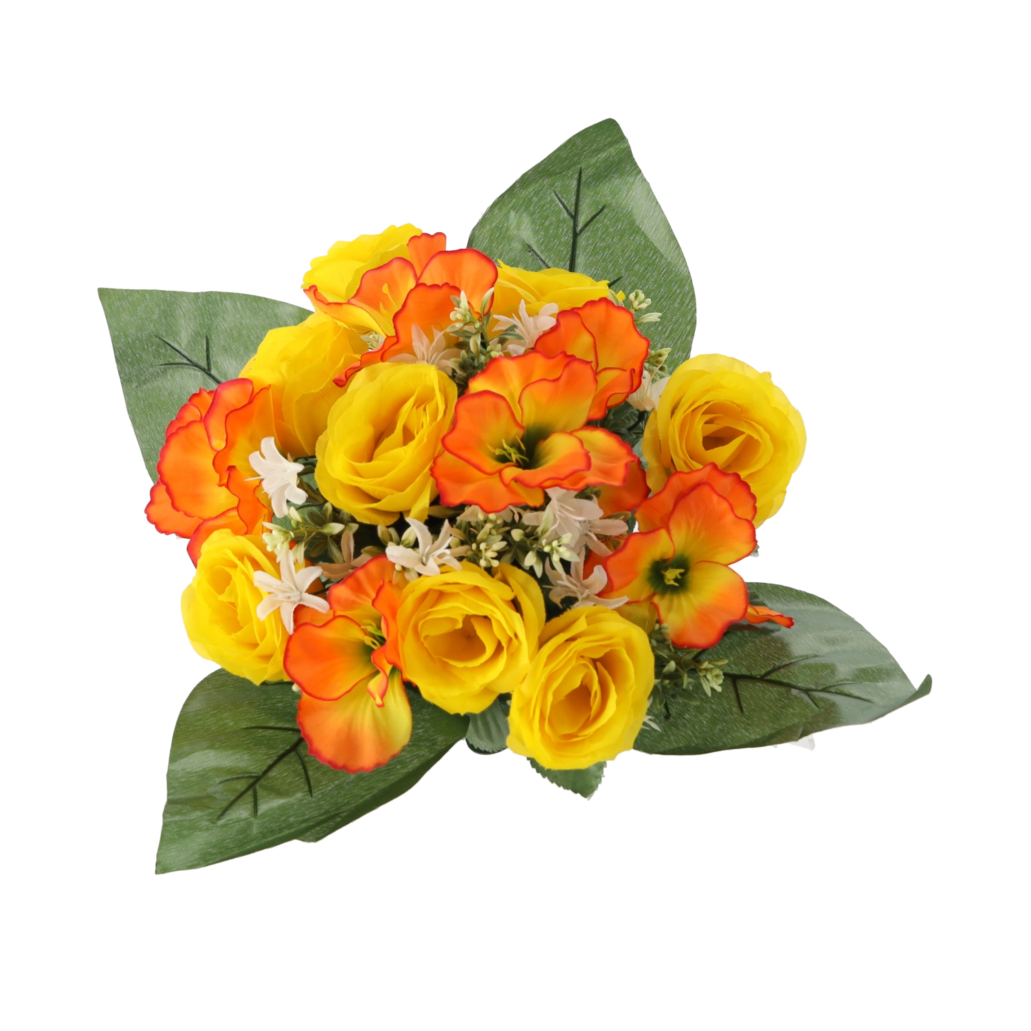 Vneste do domova či kanceláře svěží nádech květin bez starostí. Umělá kytice s růžemi a ibiškem vyniká věrným vzhledem okvětních lístků a listů, stabilním tvarem a sytými barvami, které nevyblednou. Kompaktní velikost se perfektně hodí na stůl, komodu, recepci i místo vzpomínky.
