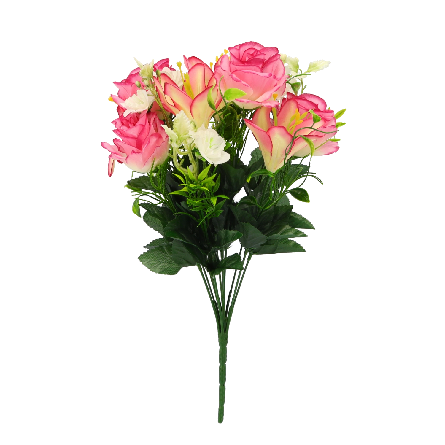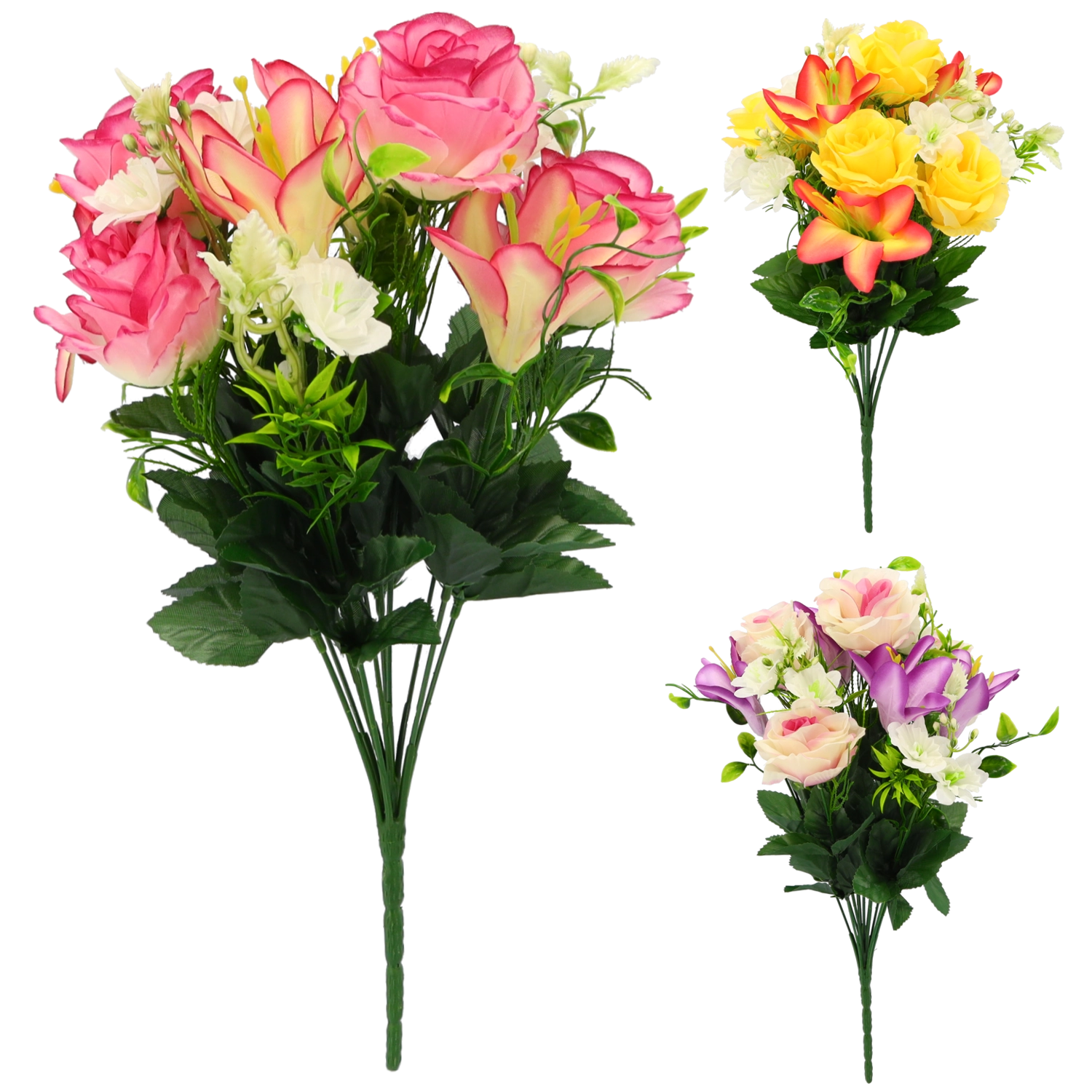 Vneste do interiéru nadčasovou krásu květin bez starostí. Tato umělá kytice růží a lilií nabízí věrné provedení okvětních lístků a listů, stabilní tvar a dlouhou životnost. Díky mixu barevných variant snadno sladíte kytici s moderními i klasickými aranžemi.