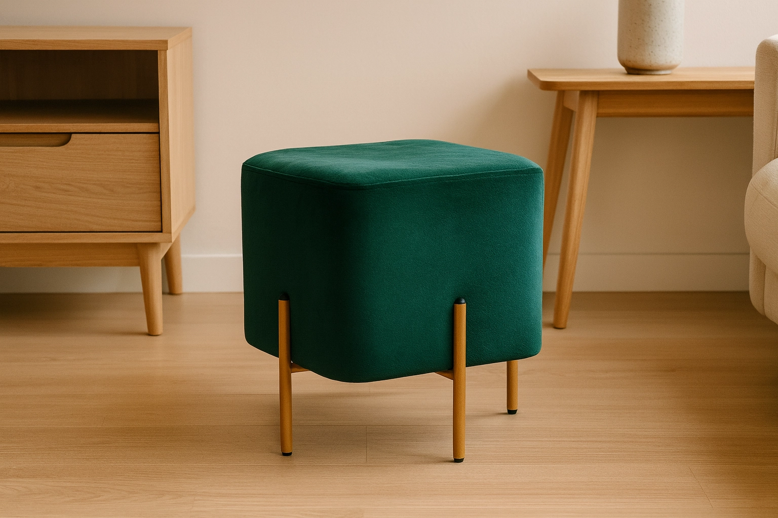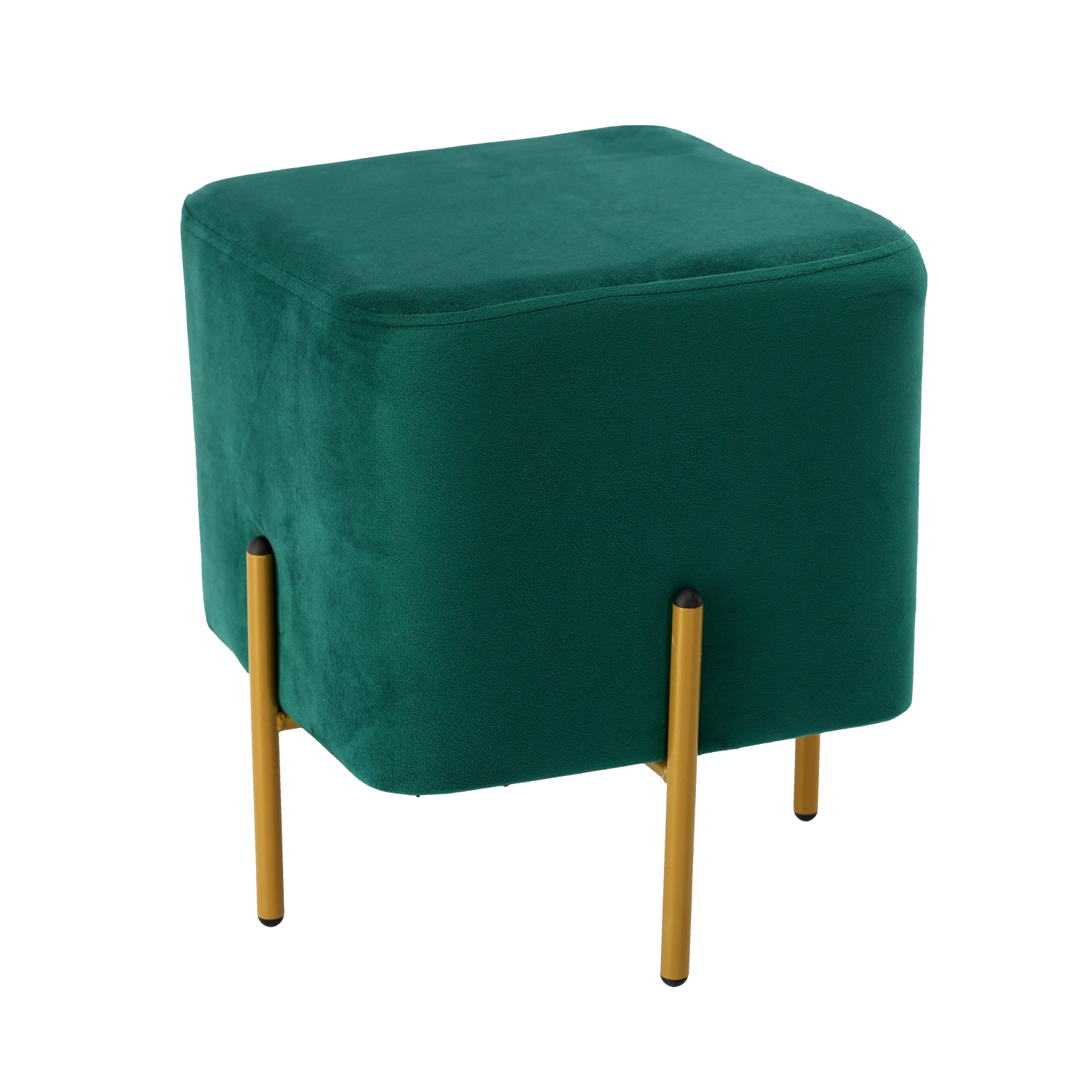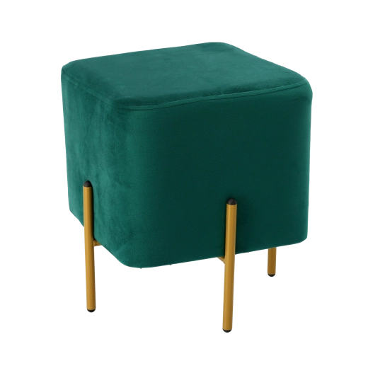 Vneste do svého domova luxusní nádech. Tmavě zelená sametová taburetka na štíhlých kovových nohách ve zlatém provedení kombinuje elegantní vzhled s praktickou funkčností. Měkké polstrování s pěnou vyšší hustoty zajišťuje pohodlí při sezení, zatímco odolná konstrukce garantuje dlouhou životnost.