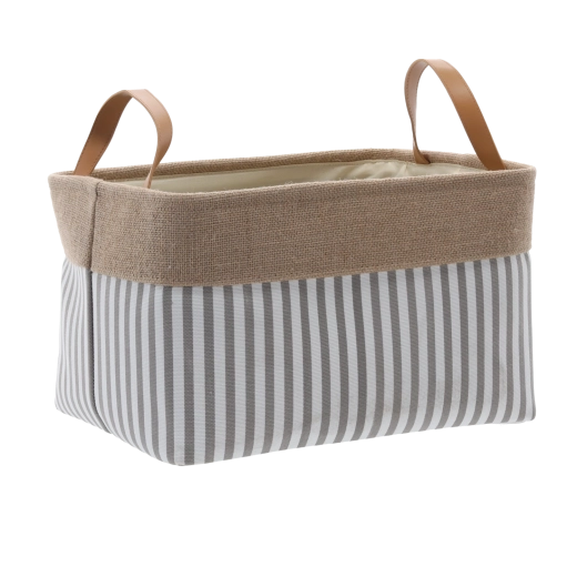 Udržte si pořádek doma stylově. Tento textilní úložný koš o rozměrech 30 × 40 × 24 cm poskytuje univerzální prostor pro organizaci každodenních věcí – od prádla a hraček po knihy a koupelnové doplňky. Neutrální proužkovaný vzor a béžové detaily ladí s většinou dekorů.