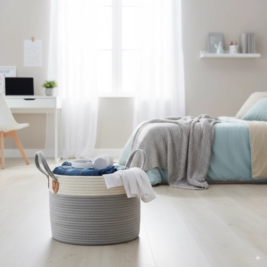 Dvě praktická ucha umožňují pohodlné přenášení koše mezi místnostmi – oceníte při sběru hraček, prádla či třídění textilií.