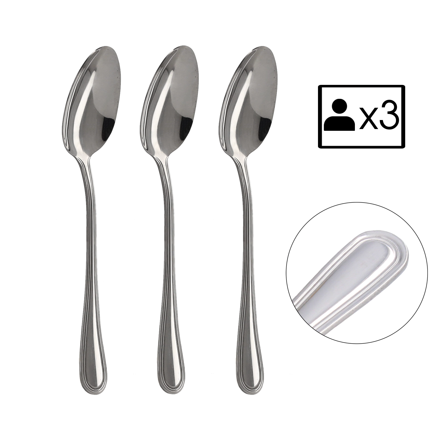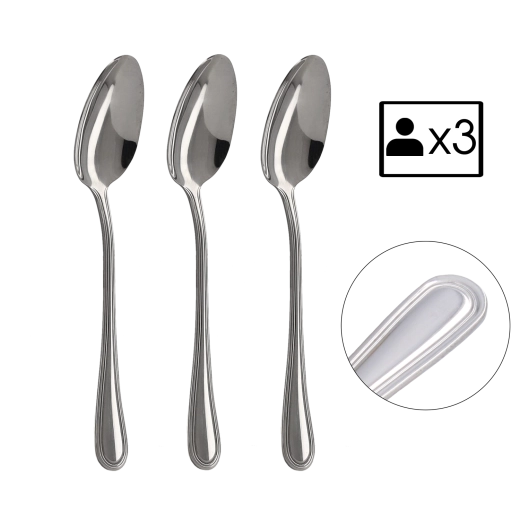 Praktické balení 3 kusů je ideální pro doplnění stávající sady nebo jako rychlé řešení pro menší domácnosti. Lžíce mají vyváženou hmotnost a příjemně padnou do ruky, díky čemuž je stolování pohodlné a stylové.