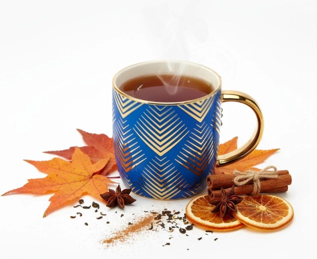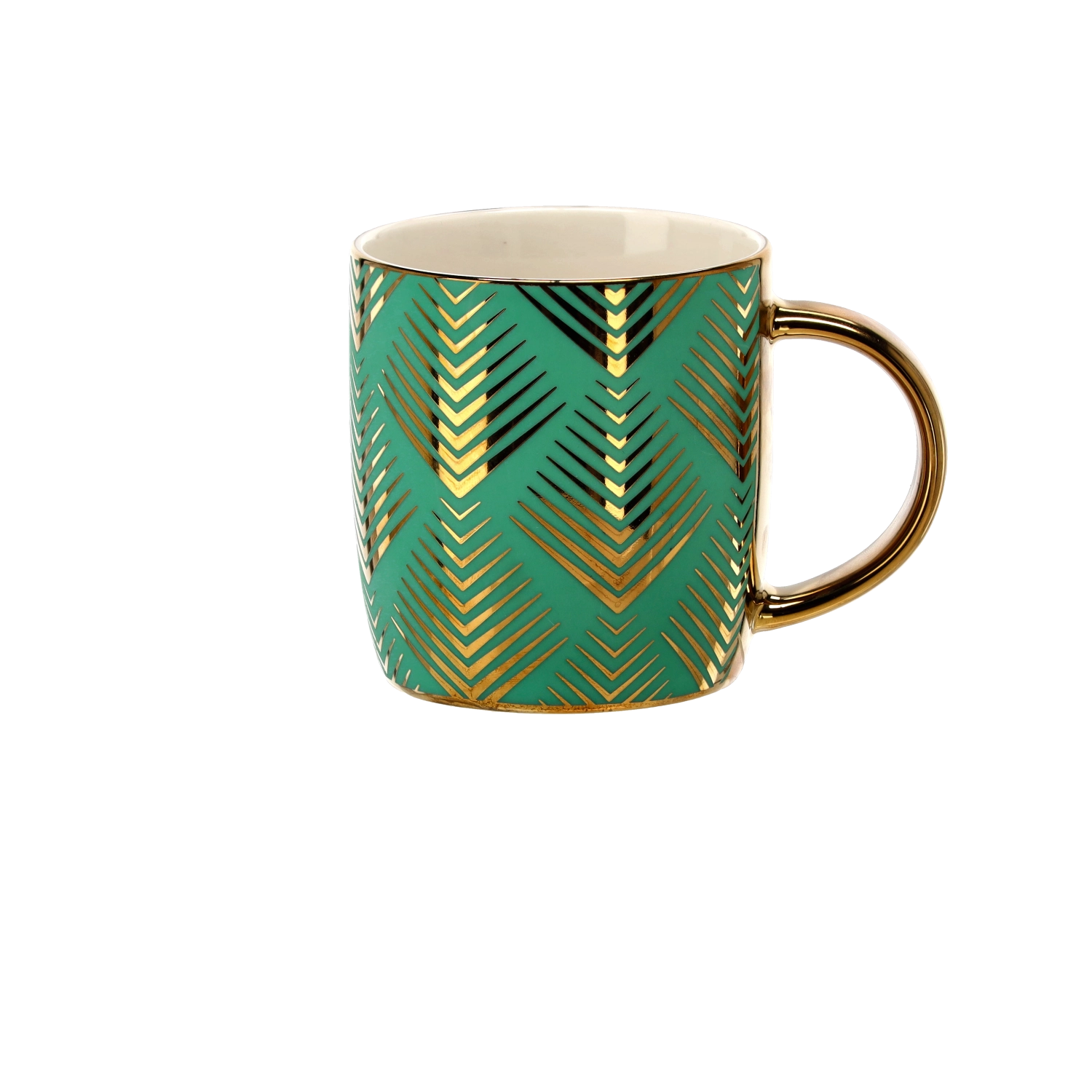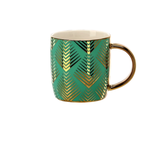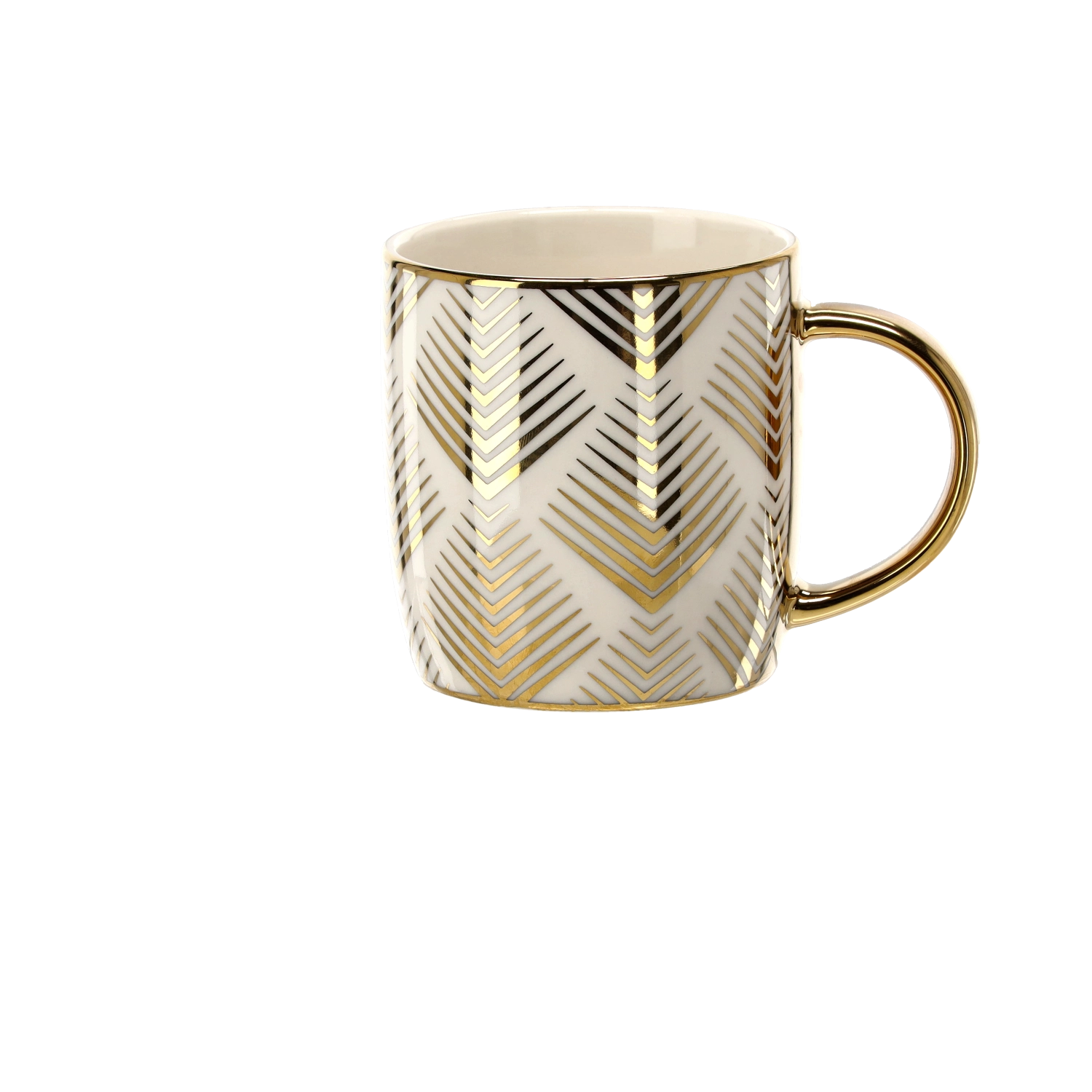 Metalické zlaté zdobení s geometrickým chevron vzorem dodává hrnku prémiový a dárkový vzhled, který vynikne v každém interiéru.