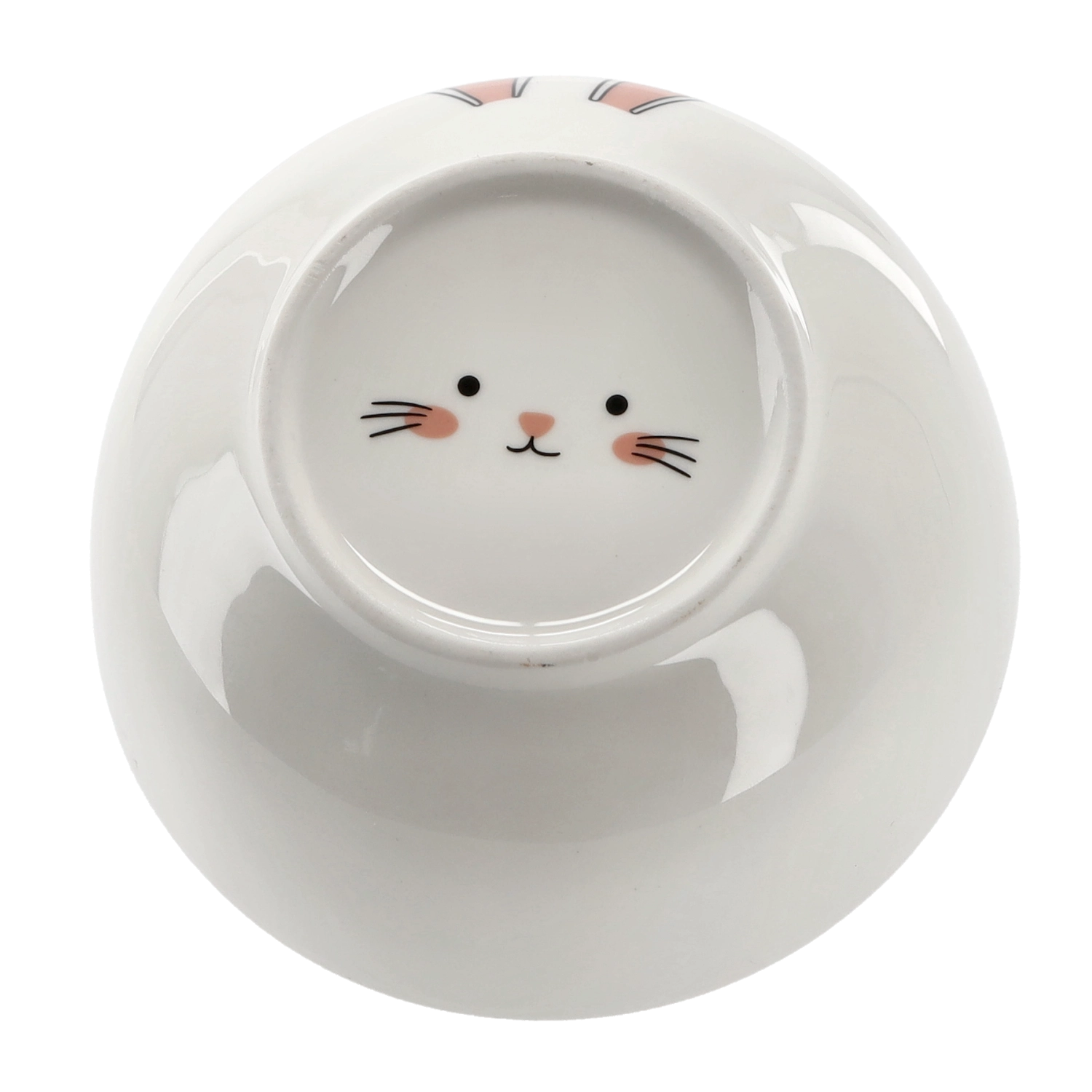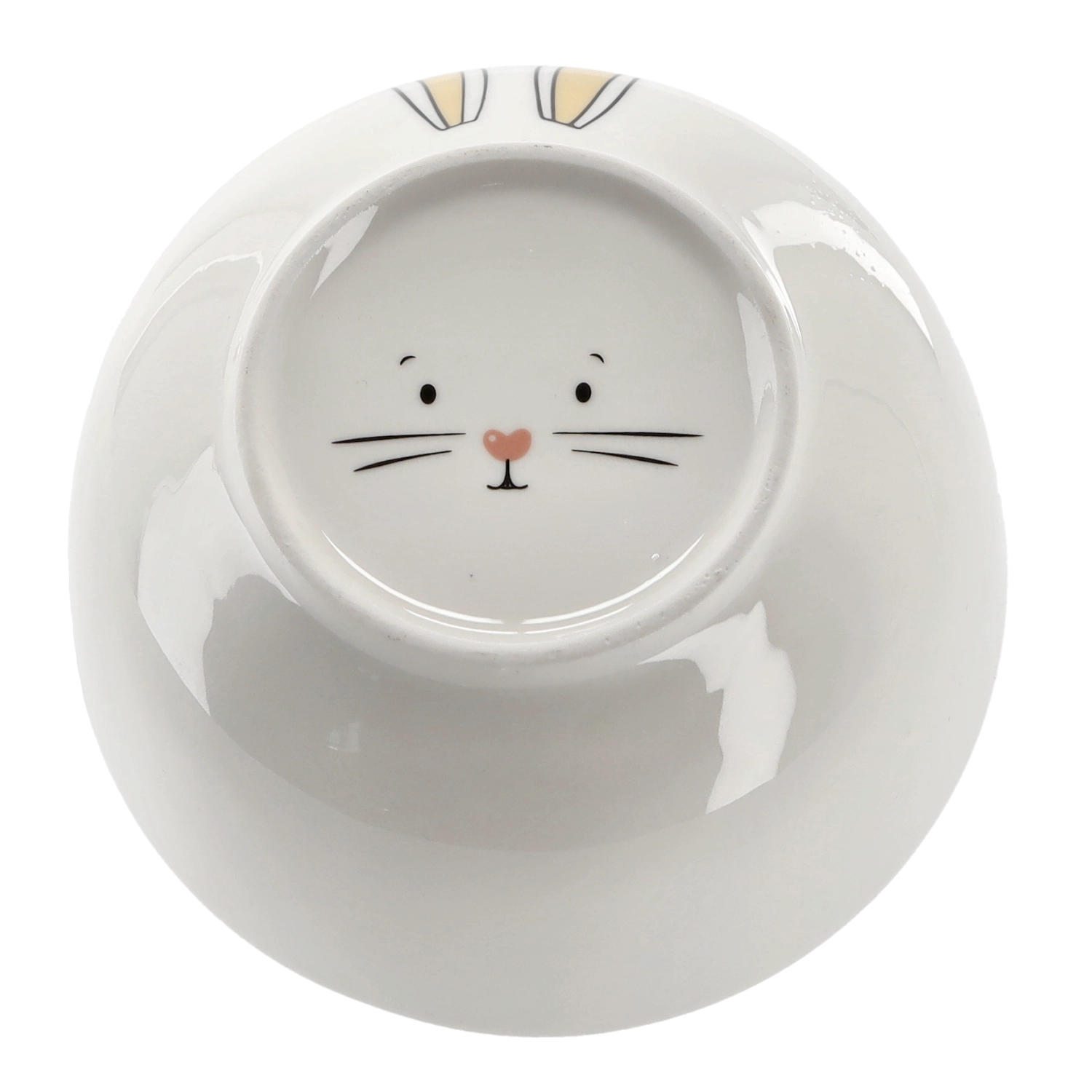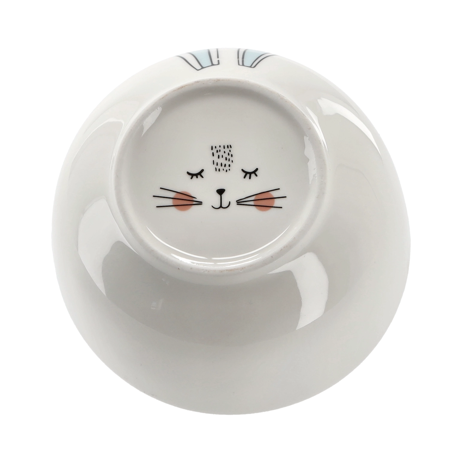 Králičí ouška na vnější straně a usměvavý obličej na dně misky potěší děti i dospělé a dodají stolování hravý nádech.