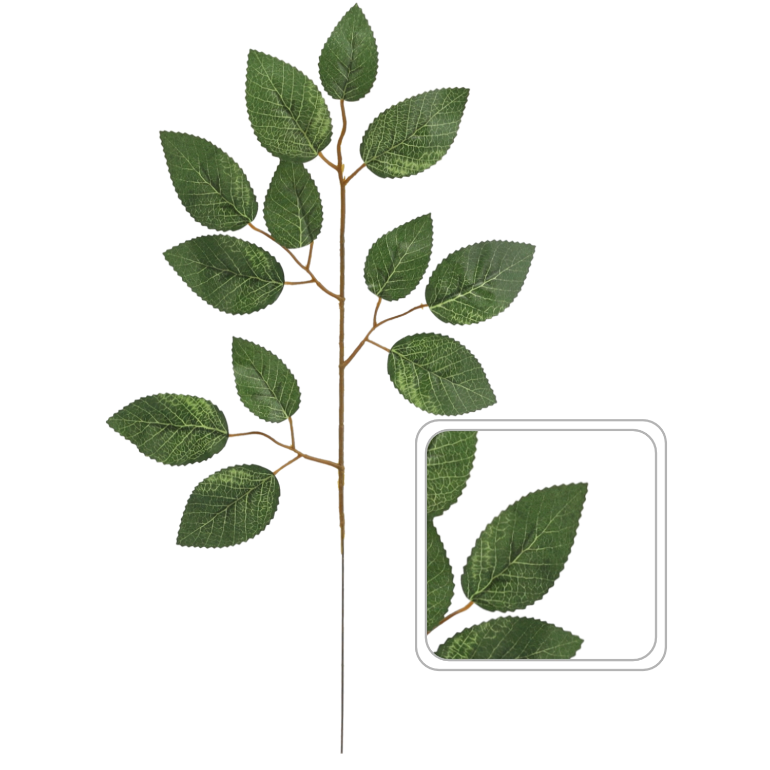 Vytvořte si doma svěží atmosféru bez starostí. Umělá větvička s listy růže vyniká detailním zpracováním, věrným odstínem zelené a dlouhou barevnou stálostí. Hodí se k celoročnímu dekorování, ať už samostatně ve váze, v girlandách, věncích nebo jako doplněk větších květinových kompozic.