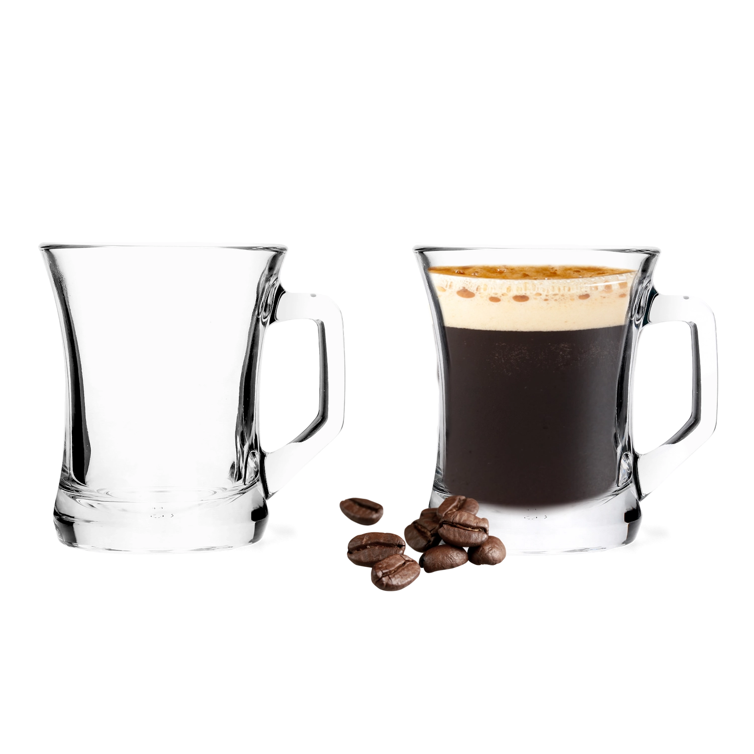 Sklenice s pevným dnem a širokým uchem jsou skvělé pro espresso, černou kávu, čaj i studené nápoje. Vhodné do myčky nádobí.