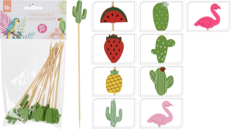 Stylová dekorativní párátka o délce 12 cm z přírodního bambusu dodají vašim pokrmům a nápojům veselý barevný nádech. V balení najdete 20 pevných a ekologických párátek s různými ozdobami, ideálních pro koktejly, dezerty, tapas a jednohubky.