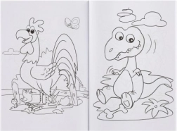 Roztomilé ilustrace kohouta, dinosaura a dalších zvířátek lákají k vybarvování a podporují fantazii. Silné kontury usnadňují práci i menším dětem.