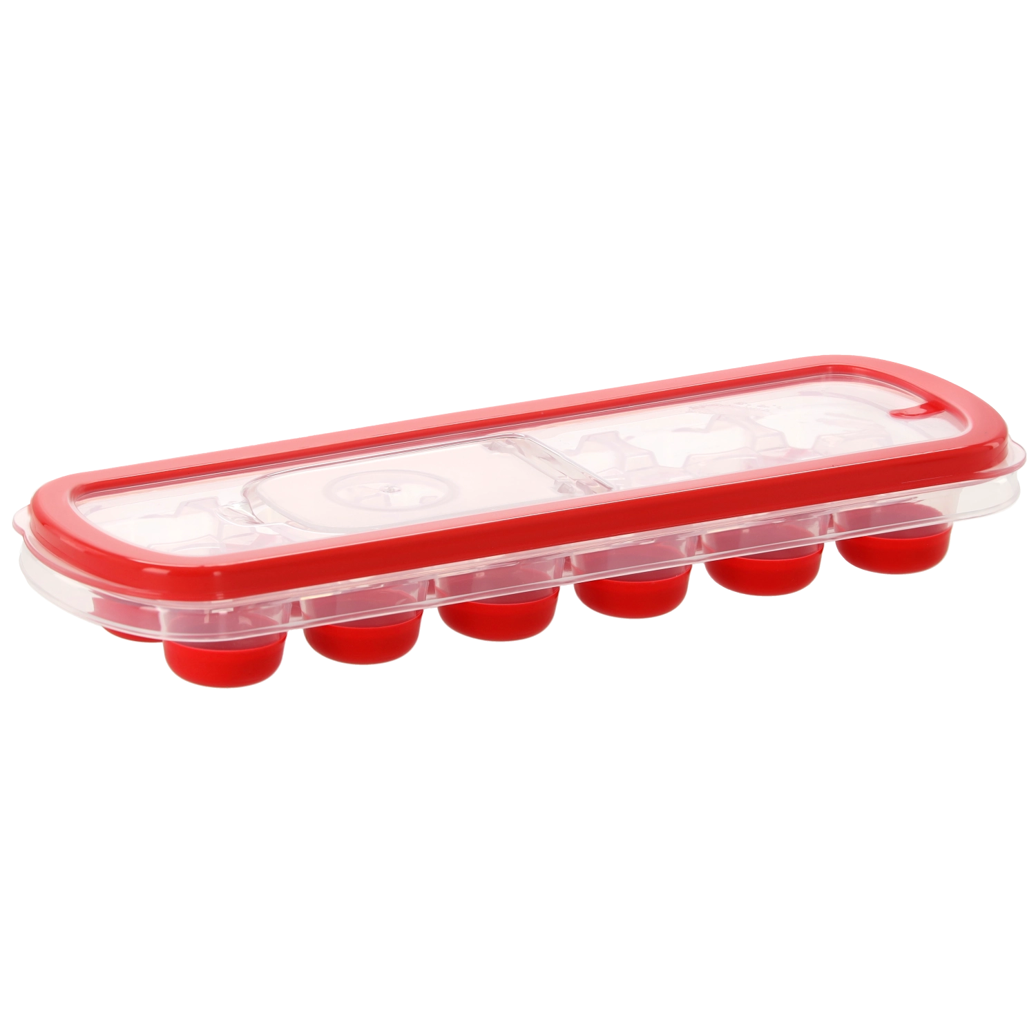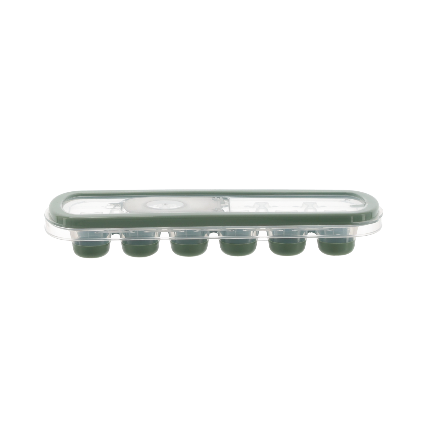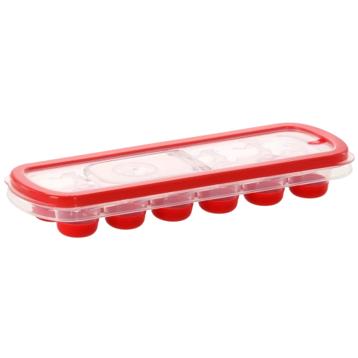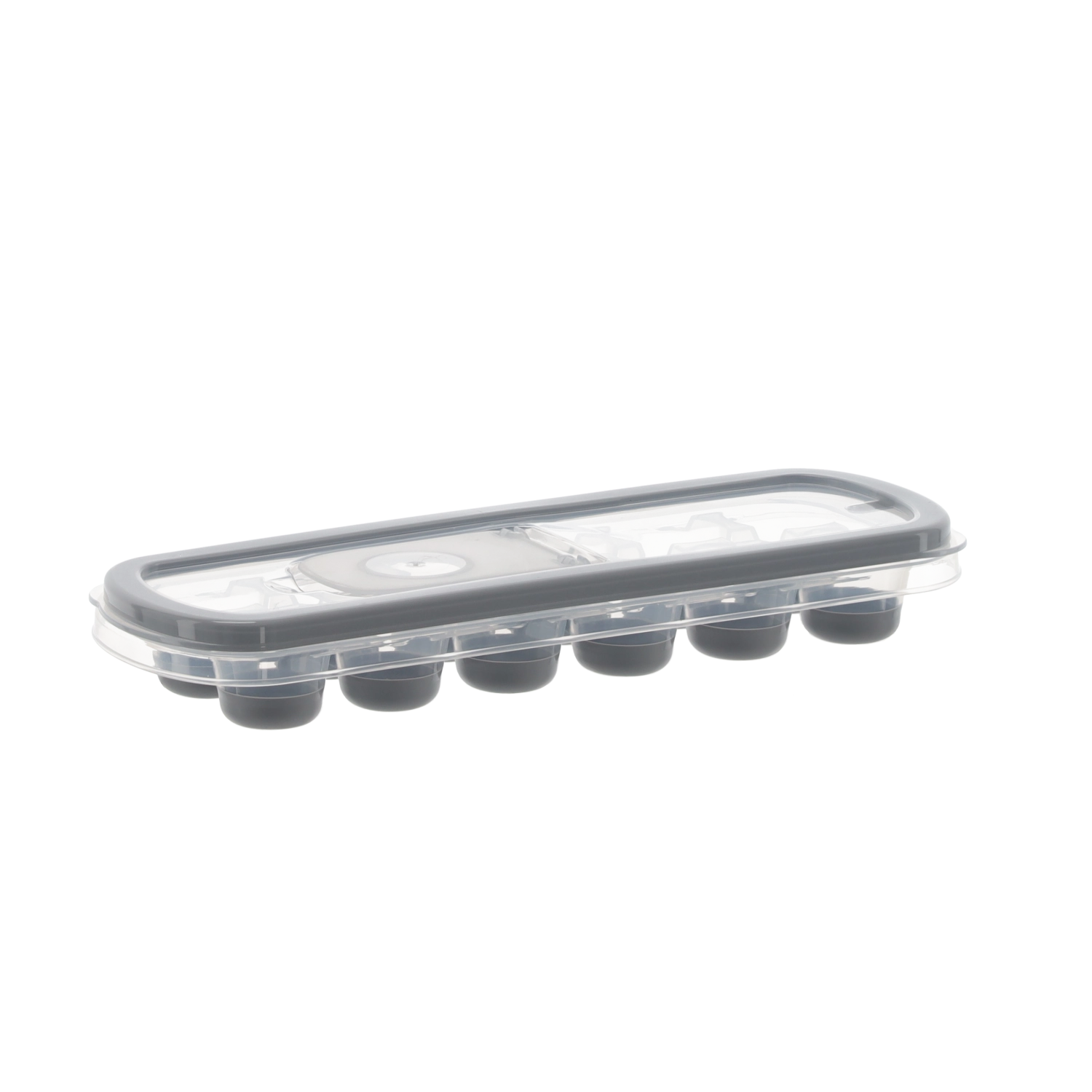Praktická formička na led se silikonovým dnem pro snadné uvolnění až 12 kostek najednou. Přiložené těsnící víko s otvorem umožňuje pohodlné plnění bez rozlití a chrání před pohlcováním pachů z mrazničky. Vyrobena z bezpečných materiálů pro styk s potravinami, vhodná do myčky nádobí a ideální i pro mražení šťáv, bylinek či pralinek.