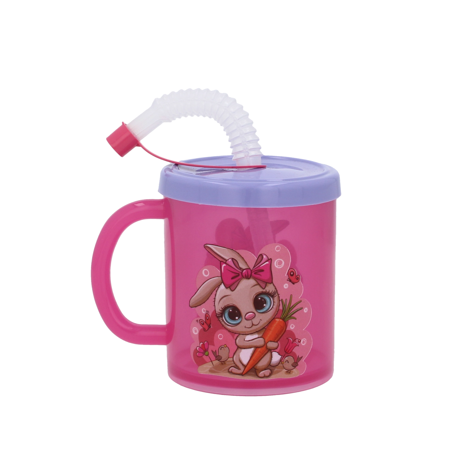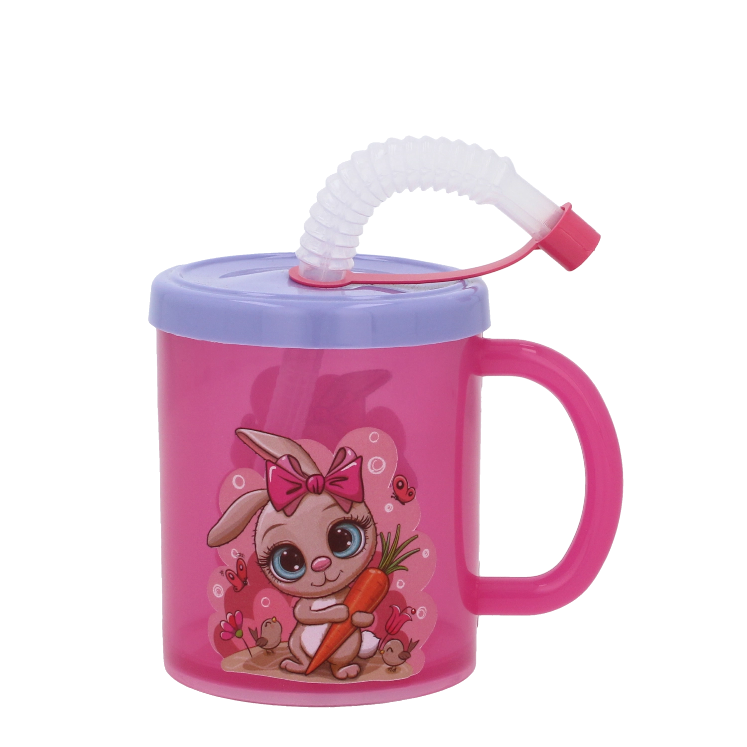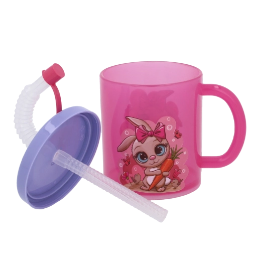 Hrnek má těsnící víčko, které pomáhá předcházet nechtěnému rozlití, a integrovanou ohebnou slámku s uzávěrem pro hygienické a snadné popíjení. Hravé motivy jako žirafa, tučňák nebo králíček podporují samostatnost dětí a dělají z pití zábavu.