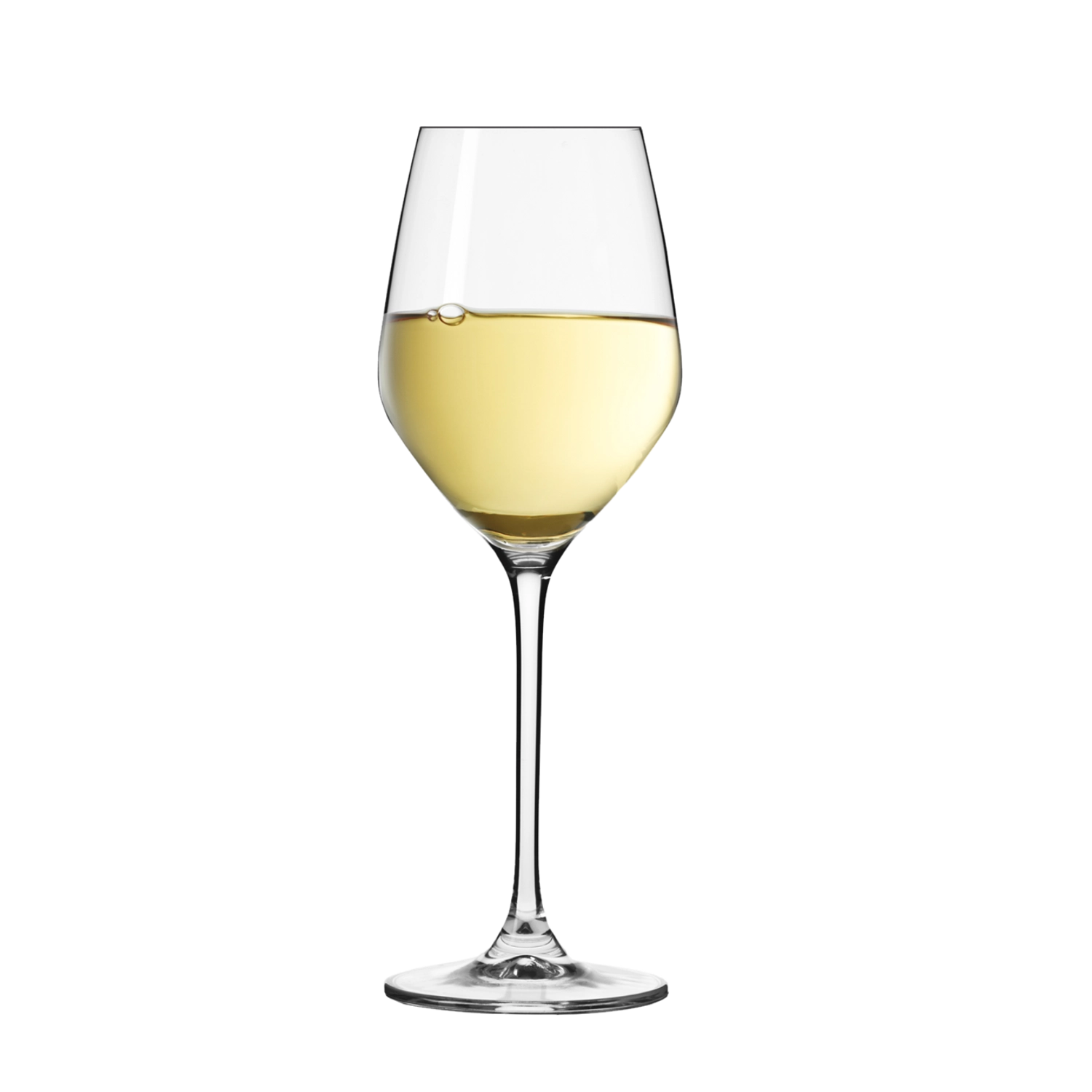 Širší kalich se směrem k okraji zužuje, čímž koncentruje vůně a zlepšuje vnímání chuti bílého vína při degustaci.