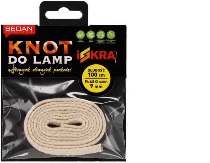 Plochý bavlněný knot ISKRA o šířce 9 mm a délce 100 cm je spolehlivá volba pro petrolejové a olejové lampy i pochodně. Vyrobený ze 100% přírodní bavlny zajišťuje rovnoměrné a jasné hoření s minimální kouřivostí. Díky kvalitnímu materiálu nabízí dlouhou životnost a stabilní plamen v interiéru i exteriéru.