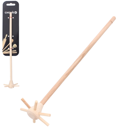 Univerzální dřevěná metlička s tradičním tvarem bez problémů promíchá omáčky, krémy i polévky. Díky délce 27 cm pohodlně dosáhne na dno hrnce a je šetrná k povrchům – nepoškrábe nepřilnavé ani smaltované nádobí.