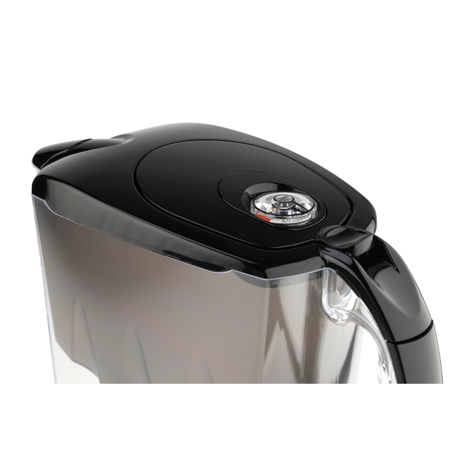 Elegantní filtrační džbán AQUAPHOR Simple o objemu 2,8 l zajišťuje účinné čištění kohoutkové vody od chloru, těžkých kovů i vodního kamene. Díky mechanickému indikátoru opotřebení vždy víte, kdy vyměnit vložku. Lehká konstrukce, výklopné víko pro snadné plnění a moderní černé provedení skvěle zapadnou do každé kuchyně.