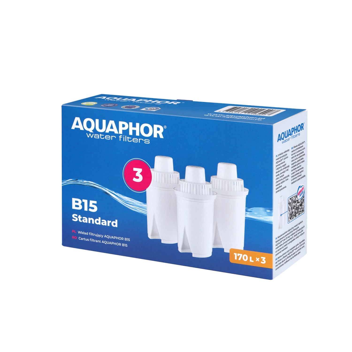 Univerzální sada tří filtračních vložek AQUAPHOR B15 Standard zajistí čistou a chutnou vodu z vodovodu pro celou rodinu. Díky vláknu Aqualen™ účinně odstraňuje chlor, těžké kovy, pesticidy i fenoly, zlepšuje barvu, chuť a vůni vody a pomáhá omezit tvorbu vodního kamene v konvicích a kávovarech. Každá vložka má kapacitu až 170 l a je kompatibilní s širokou škálou džbánů s kulatou patronou.