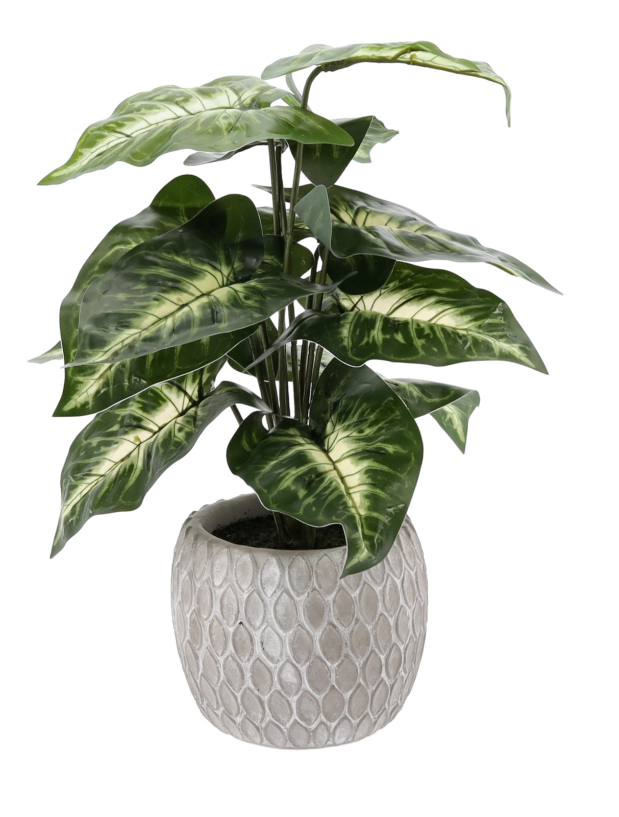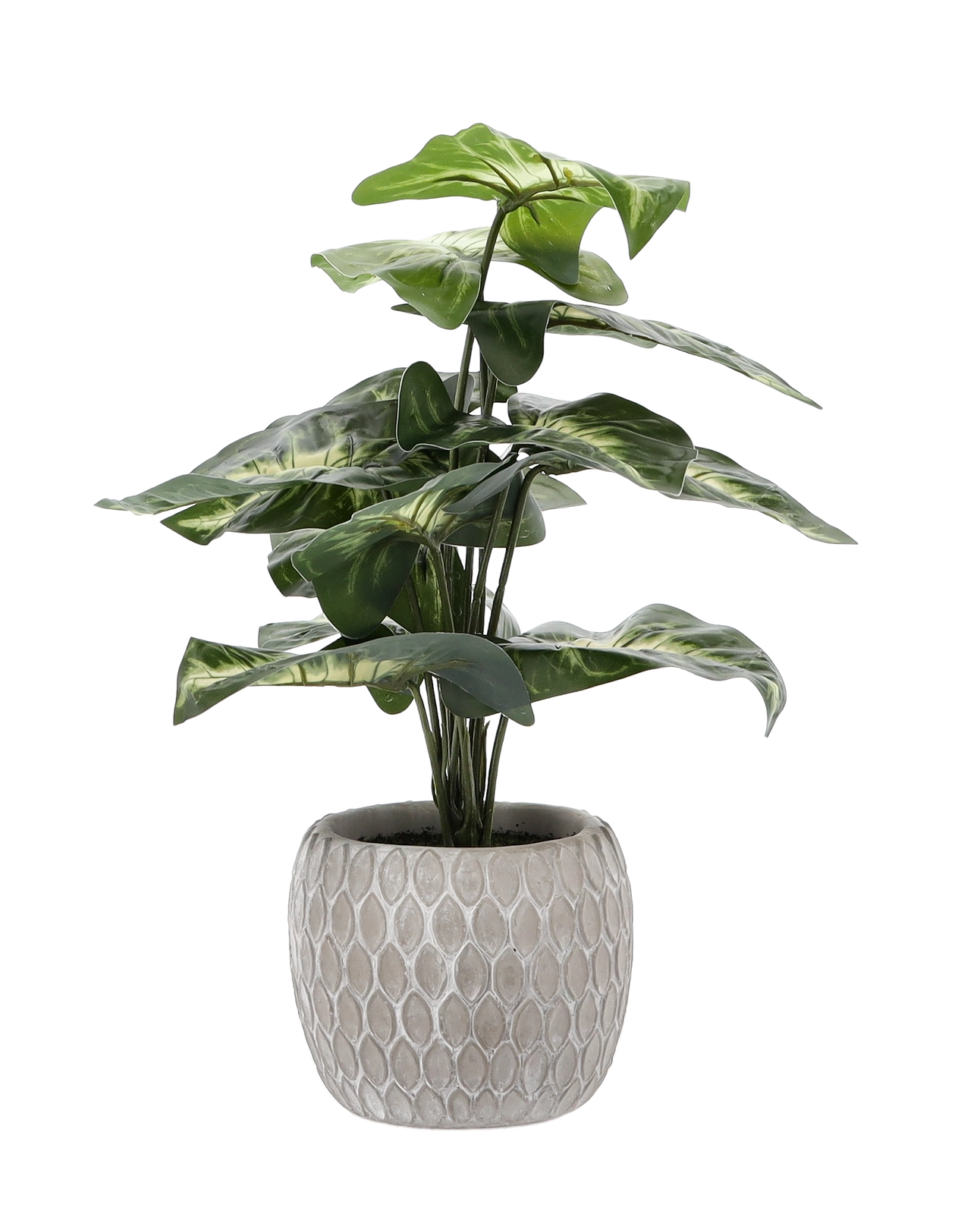 Tato elegantní umělá rostlina přináší přirozený akcent do každého prostoru bez nutnosti zalévání a péče. Realisticky tvarované a probarvené listy na více stoncích působí svěže po celý rok, zatímco jemně strukturovaný květináč v šedém odstínu stylově doplní moderní i klasické interiéry.