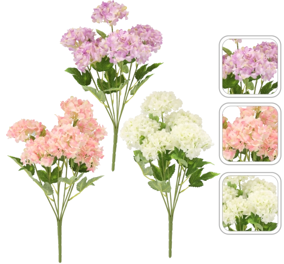 Hodí se do váz, dekorací na stůl, recepci i lounge zóny. Díky odolnosti vůči blednutí si hortenzie zachová syté barvy po dlouhou dobu.