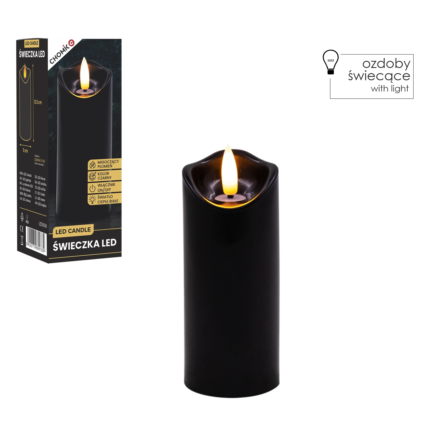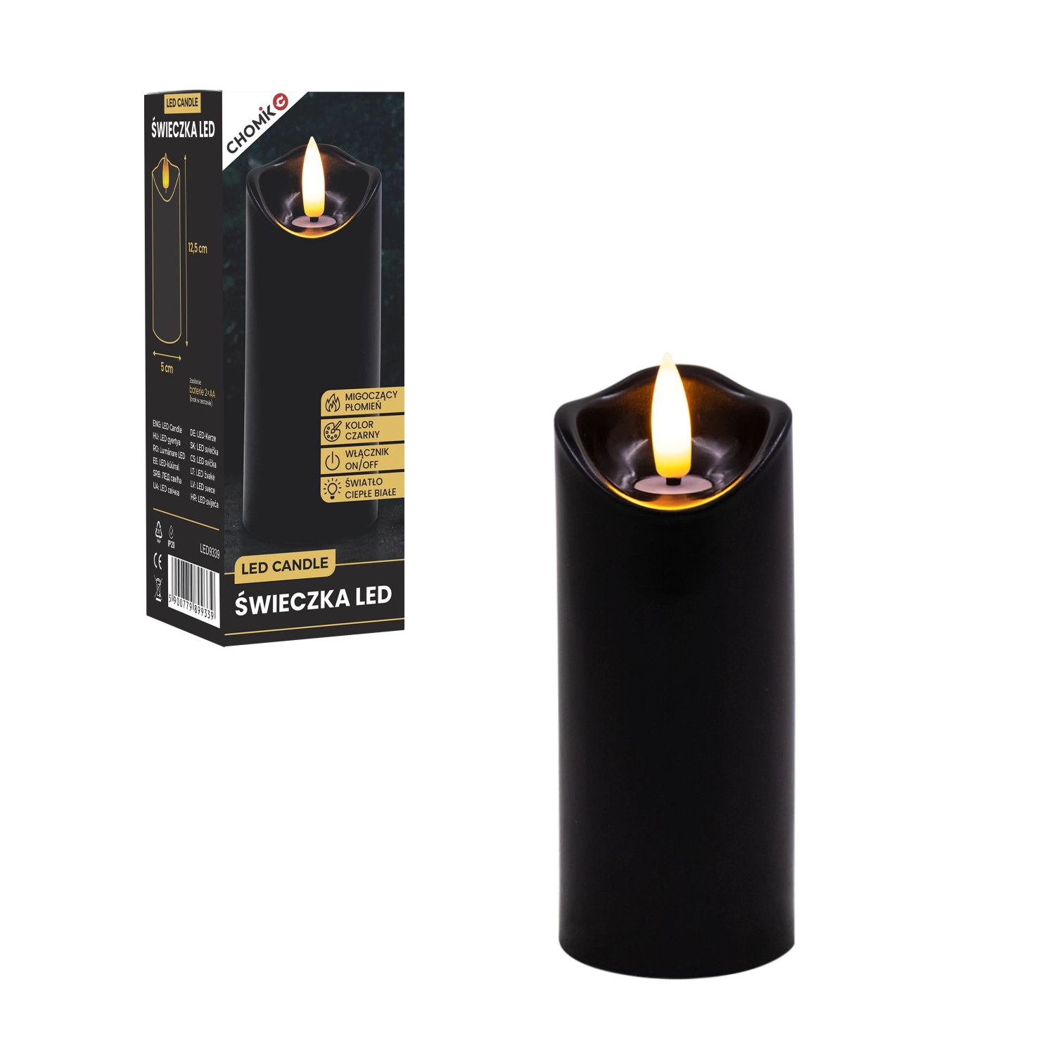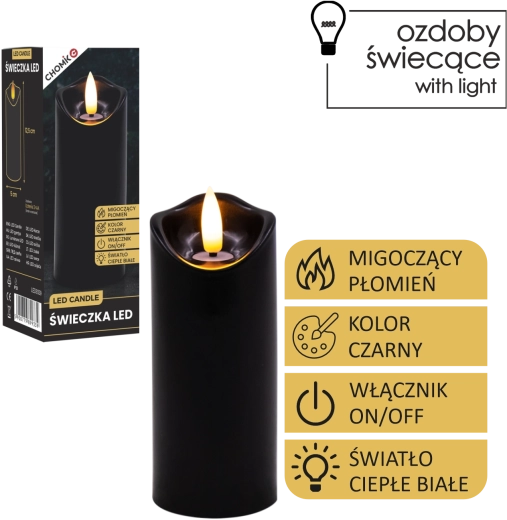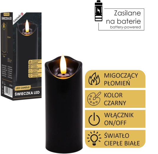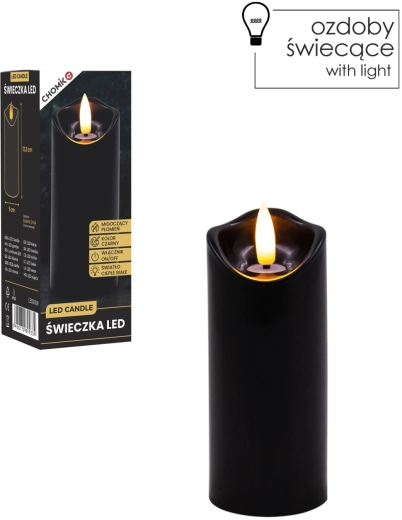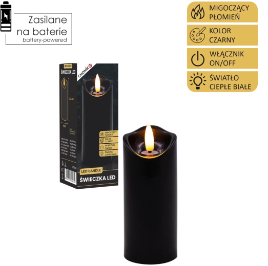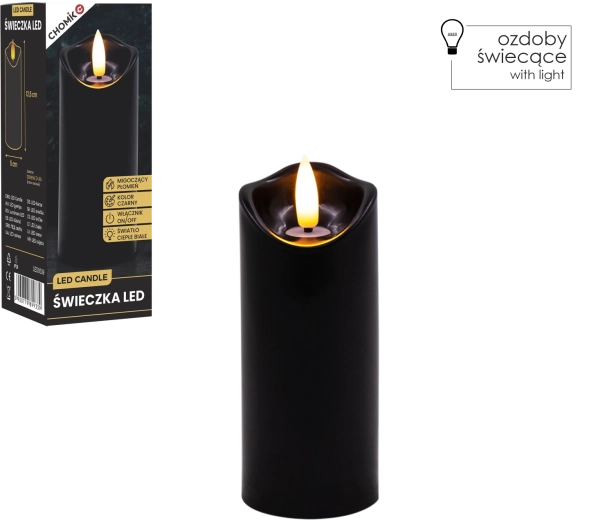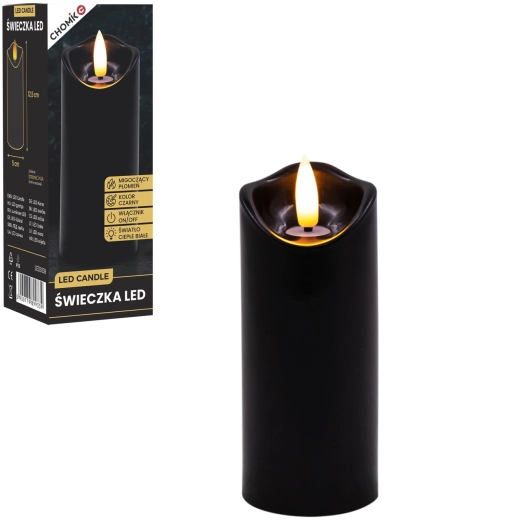Vytvořte si příjemné světlo kdykoli a kdekoli. Tato černá LED svíčka o rozměrech 5 × 12,5 cm svítí teplou bílou barvou a díky realistickému mihotání plamene věrně napodobuje skutečnou svíčku – bez nepořádku, zápachu a rizika otevřeného ohně.