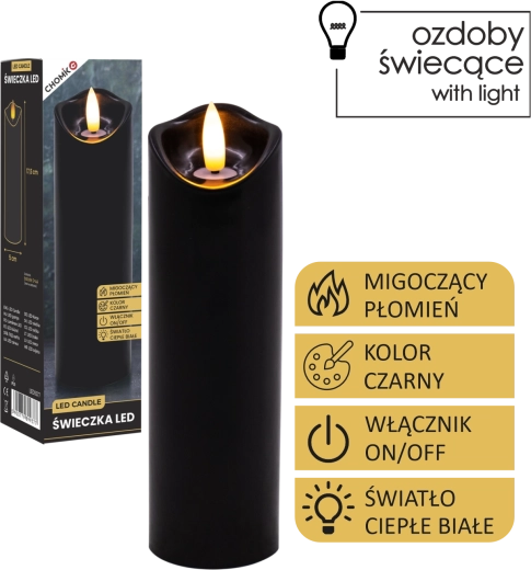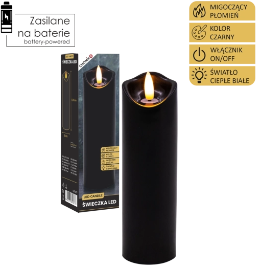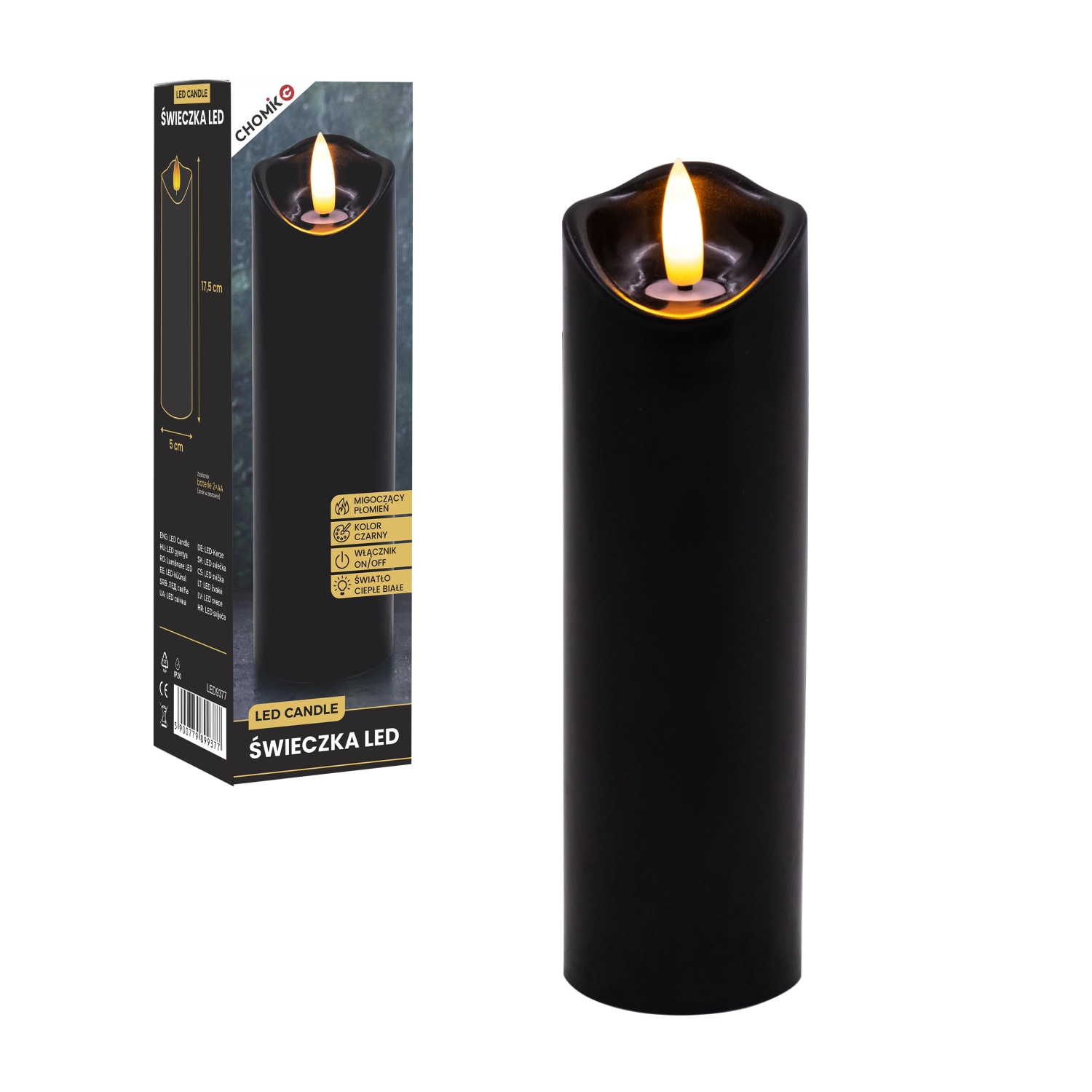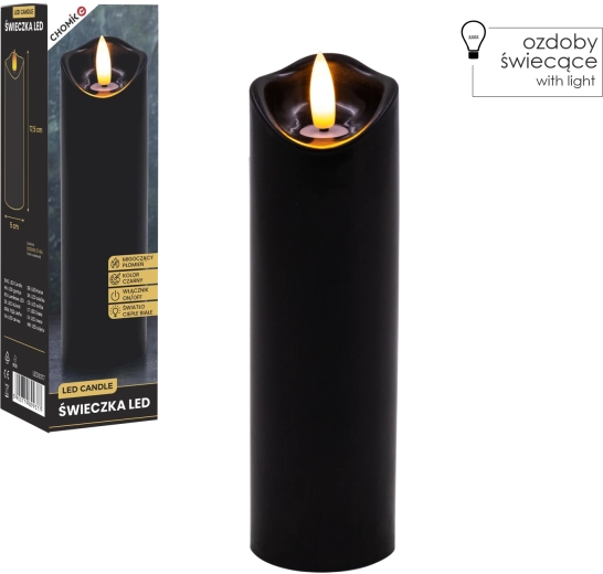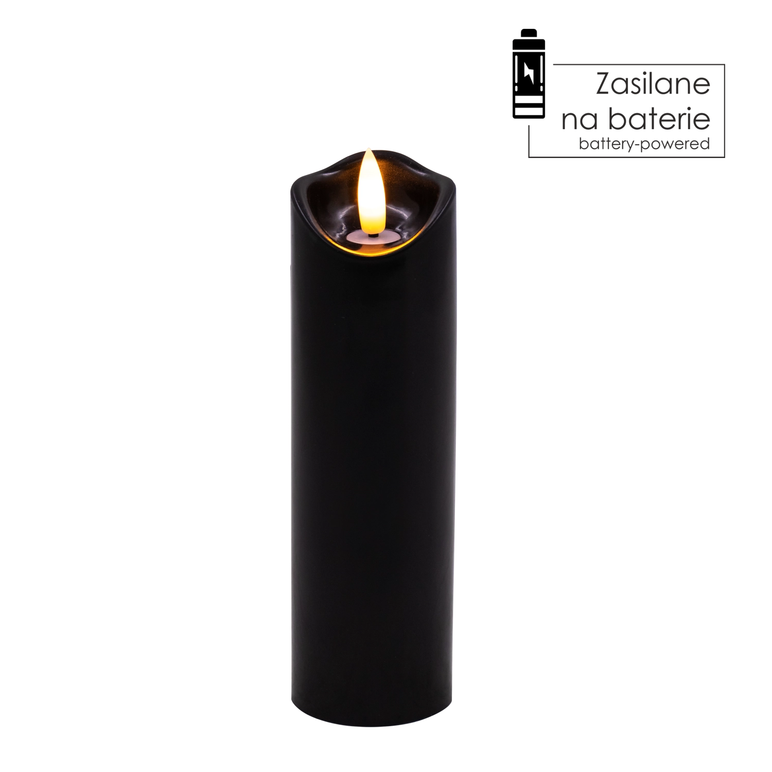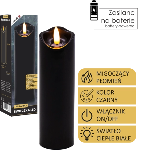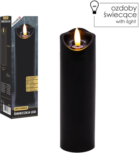 Tato černá LED svíčka přináší atmosféru živého plamene bez kouře, sazí a rizika otevřeného ohně. Teplé bílé světlo s efektem mihotání vytváří útulnou náladu v obývacím pokoji, ložnici i na slavnostně prostřeném stole. Díky univerzálním rozměrům 5 × 17,5 cm ji snadno použijete i jako náhradní vložku do lucerny nebo ozdobu na pamětní místa.