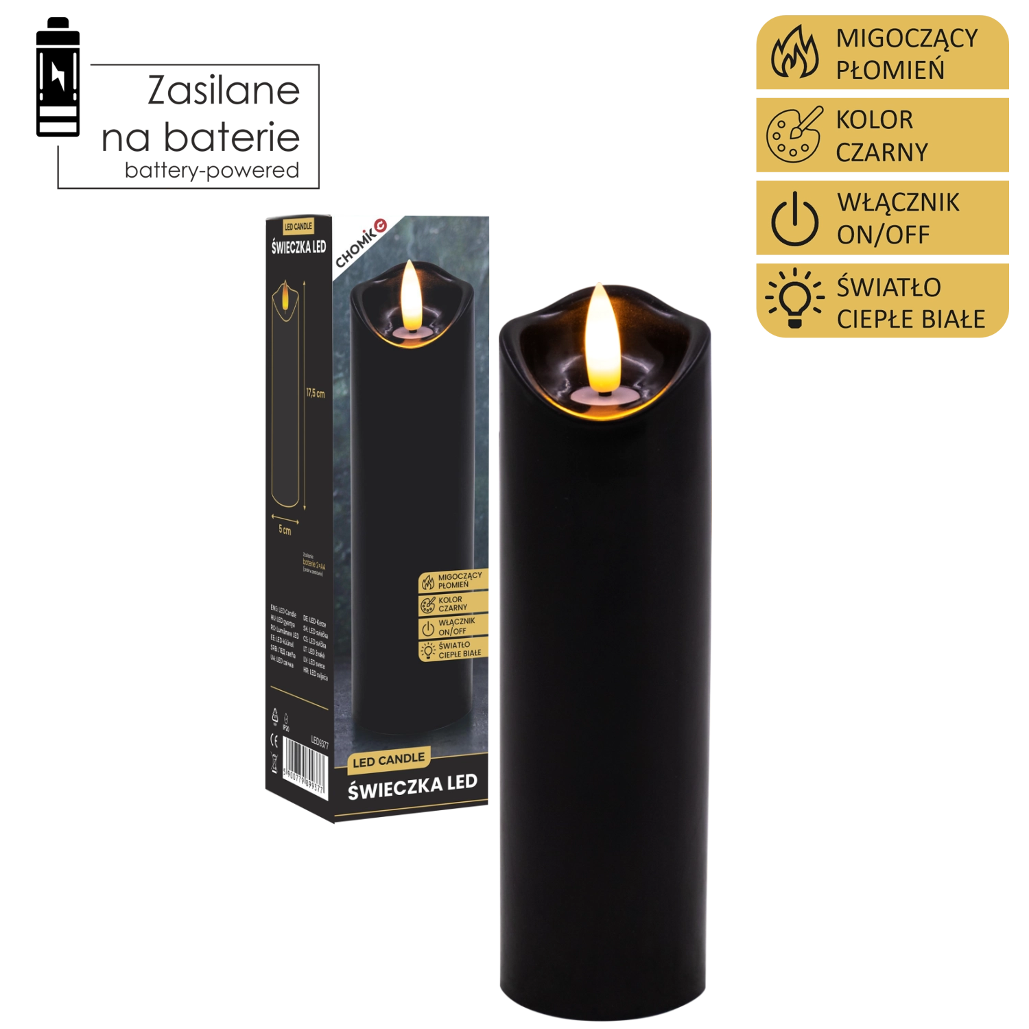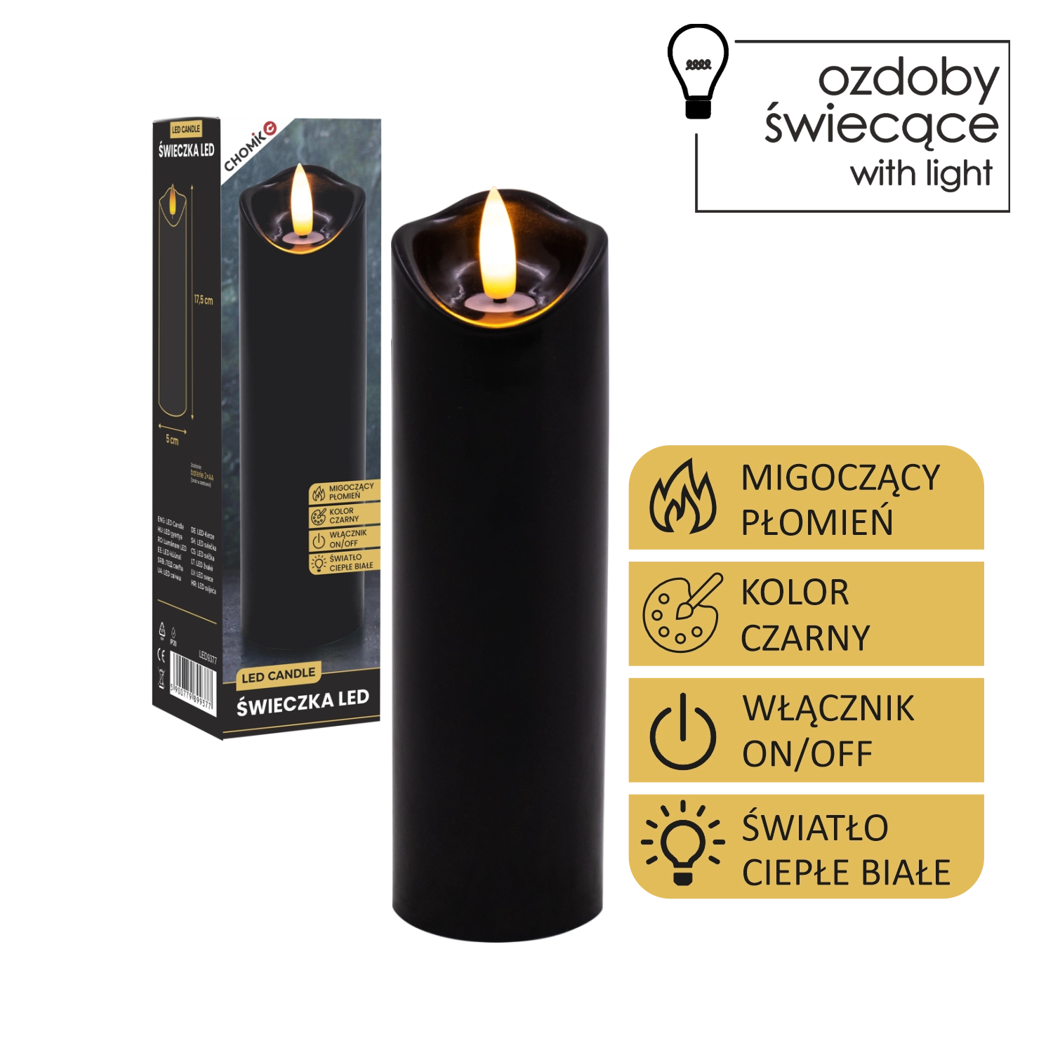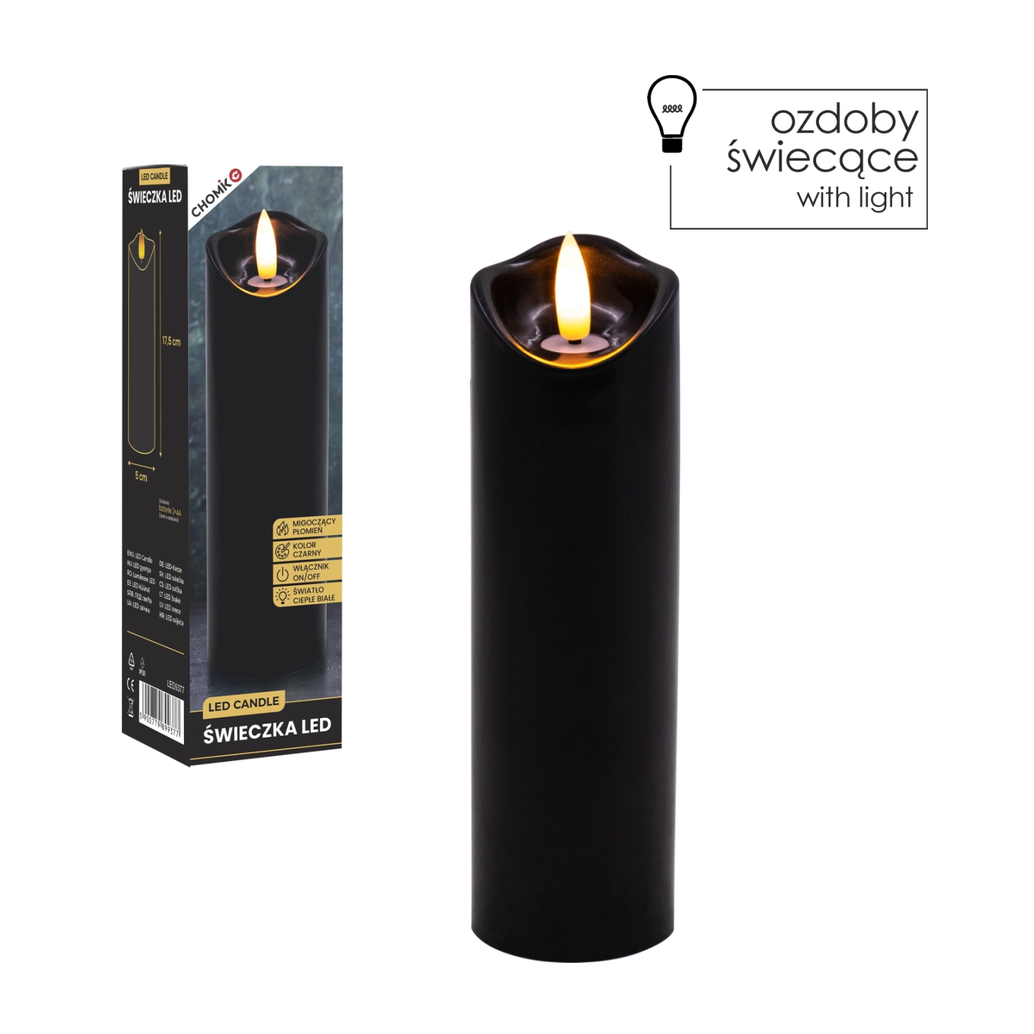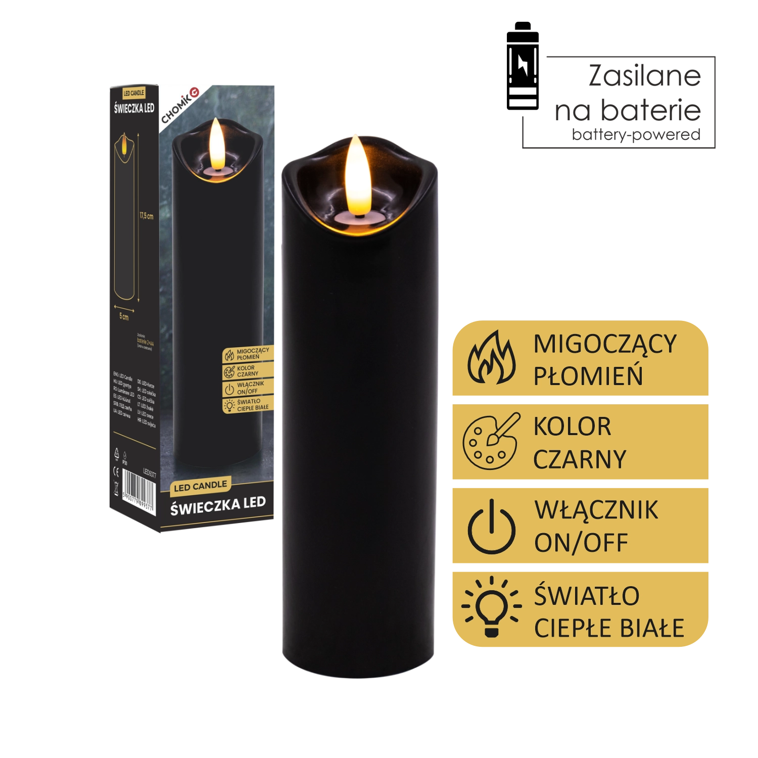 Tato černá LED svíčka přináší atmosféru živého plamene bez kouře, sazí a rizika otevřeného ohně. Teplé bílé světlo s efektem mihotání vytváří útulnou náladu v obývacím pokoji, ložnici i na slavnostně prostřeném stole. Díky univerzálním rozměrům 5 × 17,5 cm ji snadno použijete i jako náhradní vložku do lucerny nebo ozdobu na pamětní místa.