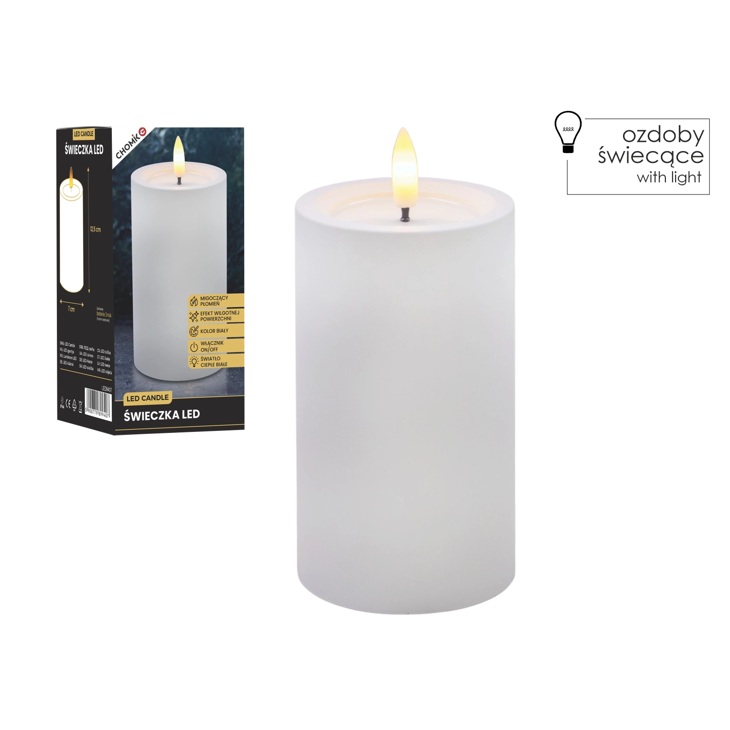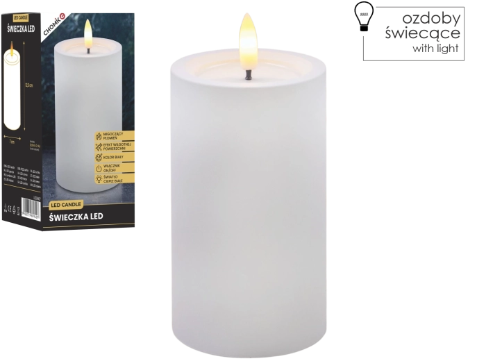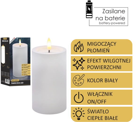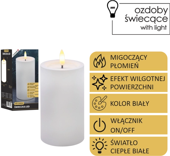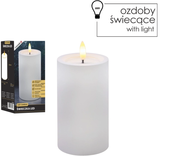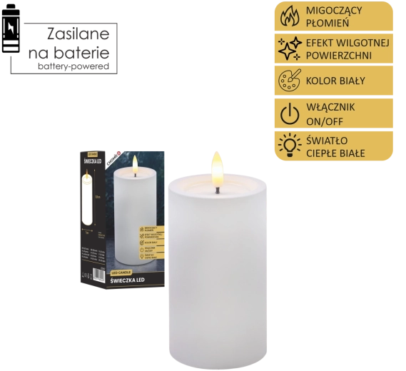 Tato realisticky zpracovaná LED svíčka v bílé barvě přináší útulné světlo teplé bílé s věrným efektem blikajícího plamínku. Díky speciálnímu povrchu s efektem vlhké horní hrany působí jako skutečný vosk, ale bez kapání, kouře a rizika otevřeného ohně.