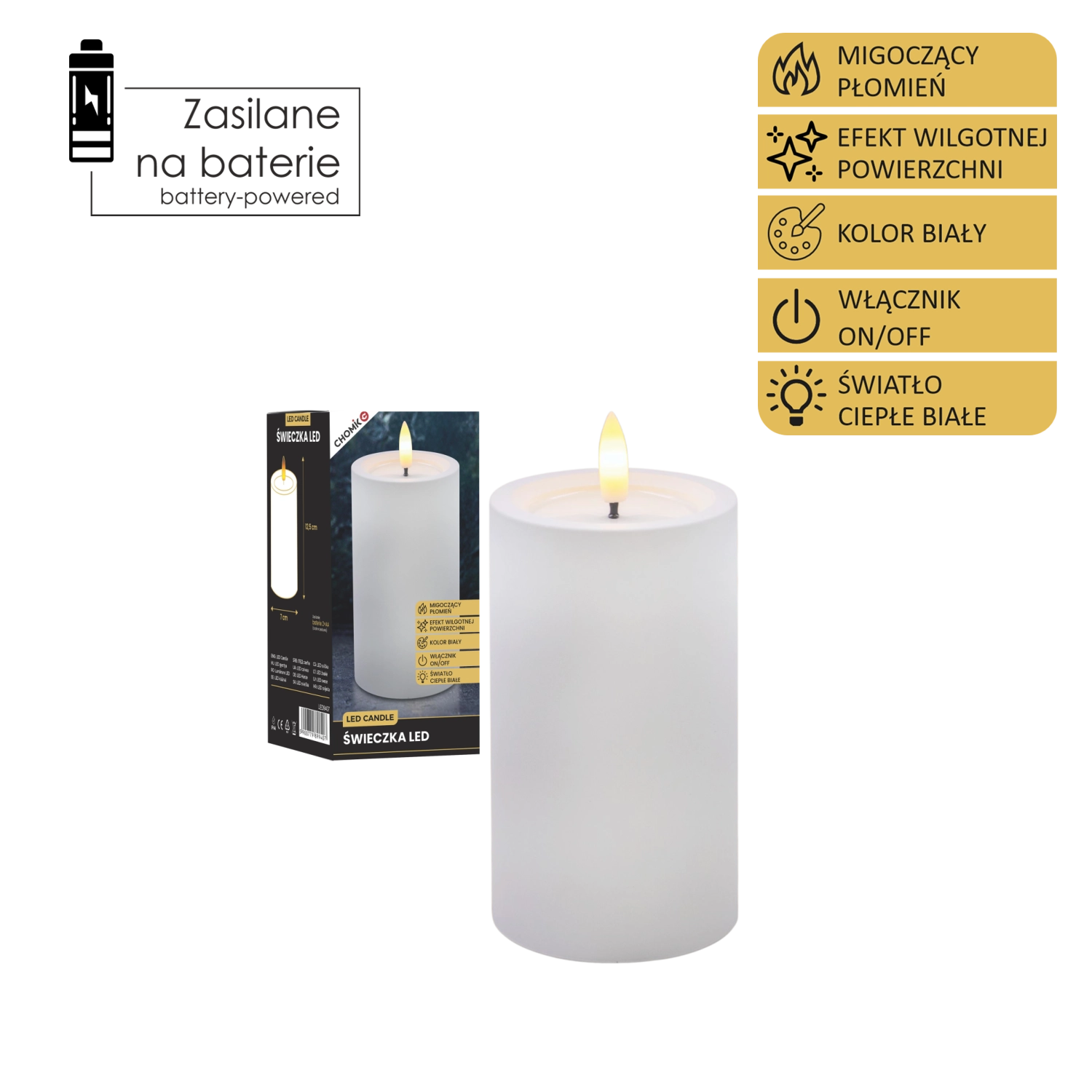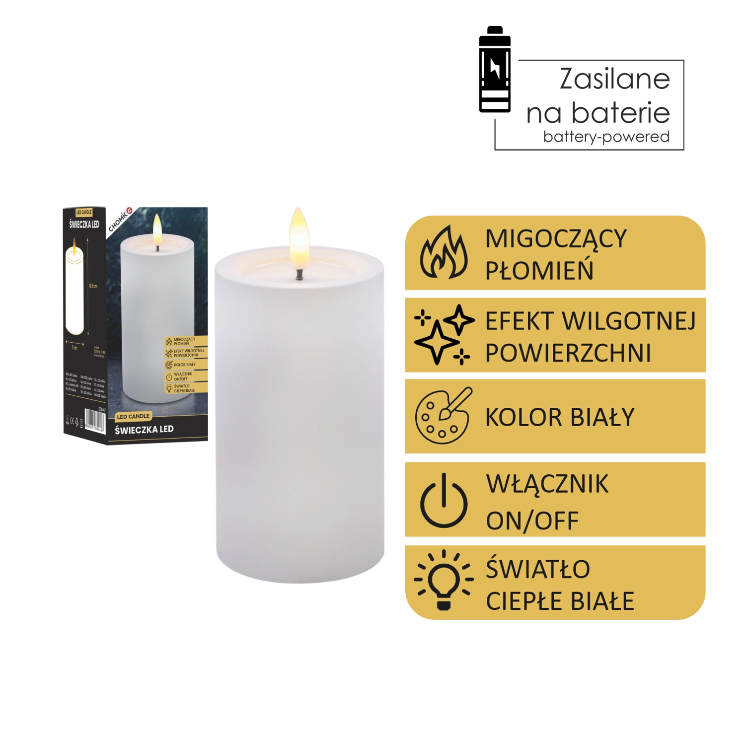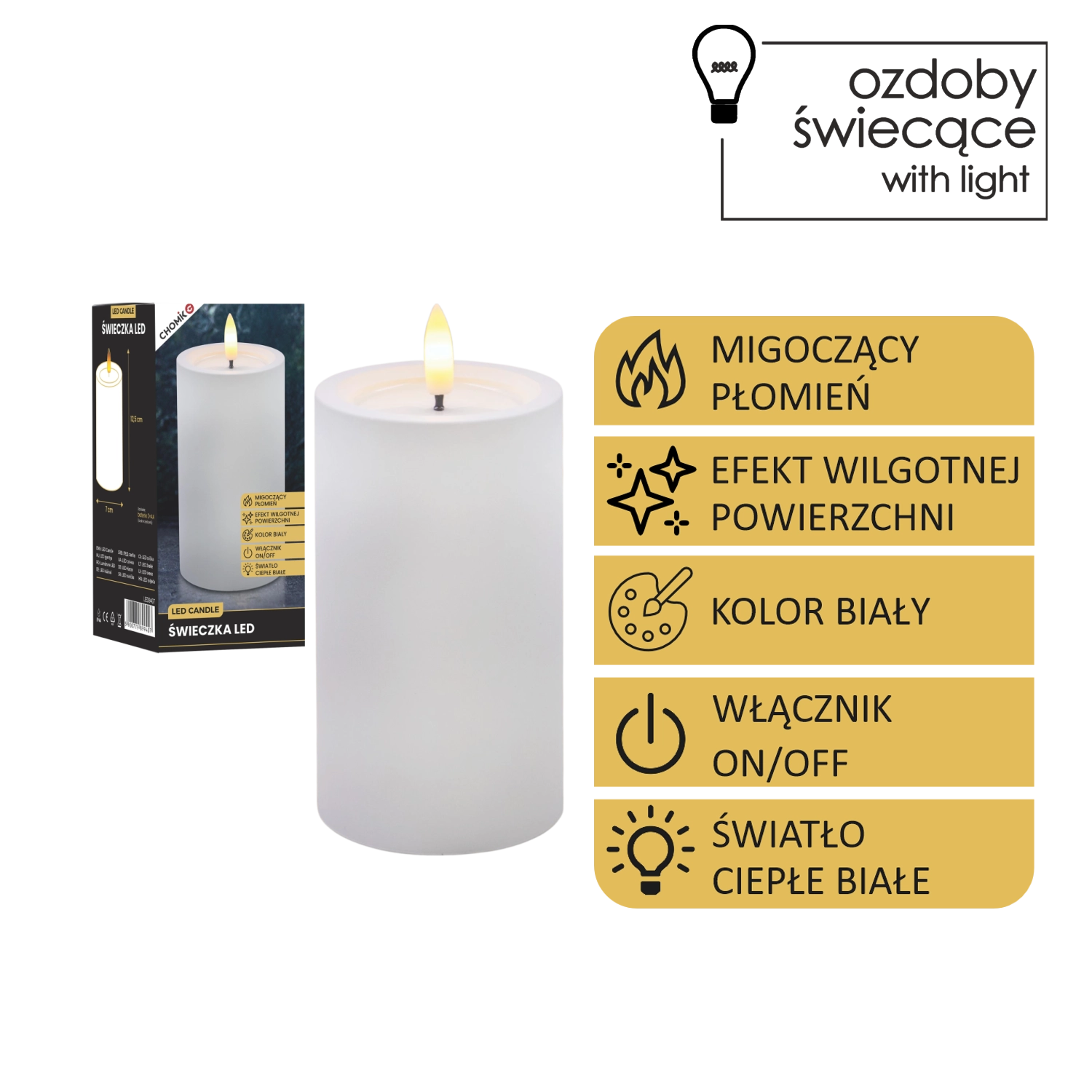 Tato realisticky zpracovaná LED svíčka v bílé barvě přináší útulné světlo teplé bílé s věrným efektem blikajícího plamínku. Díky speciálnímu povrchu s efektem vlhké horní hrany působí jako skutečný vosk, ale bez kapání, kouře a rizika otevřeného ohně.