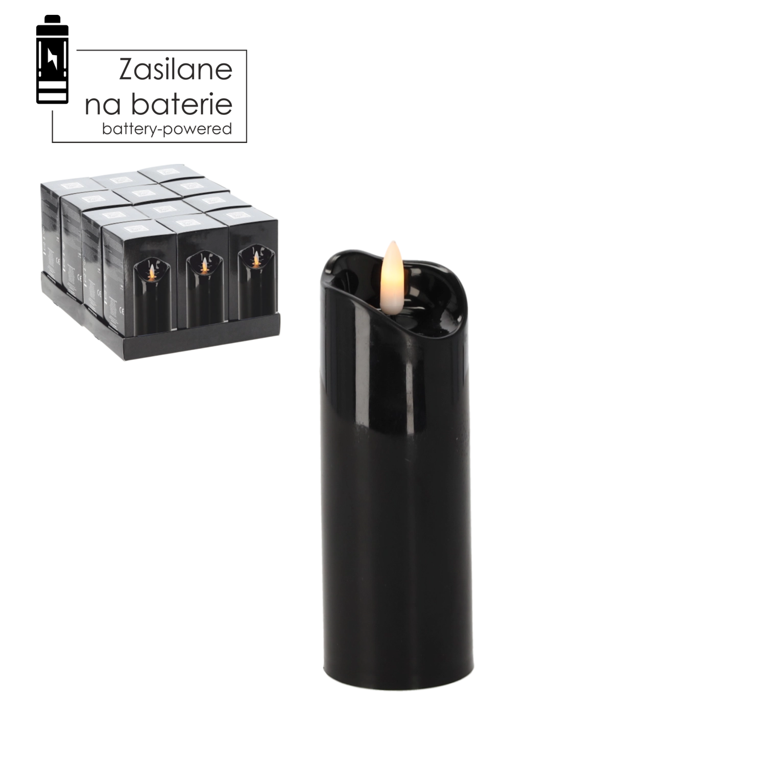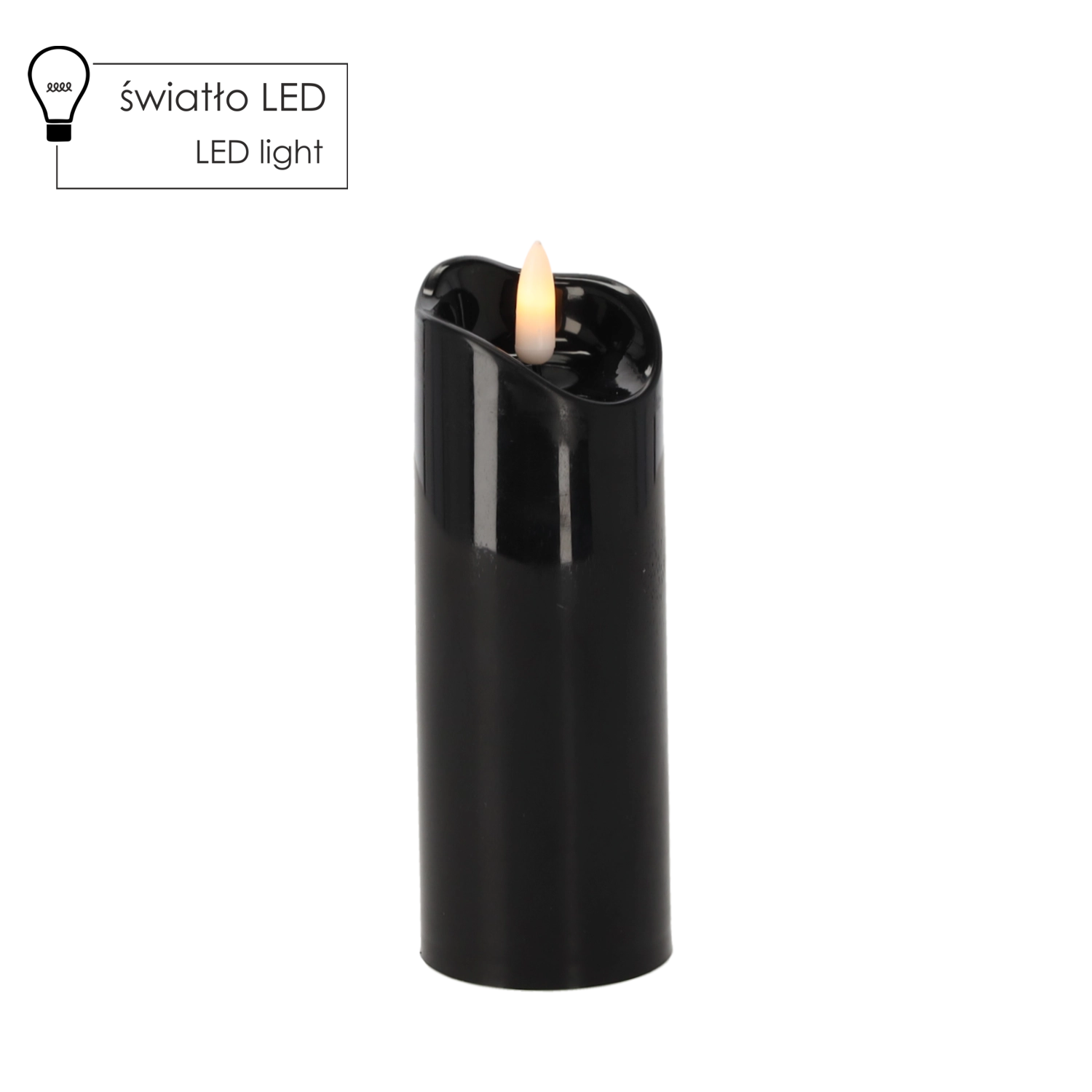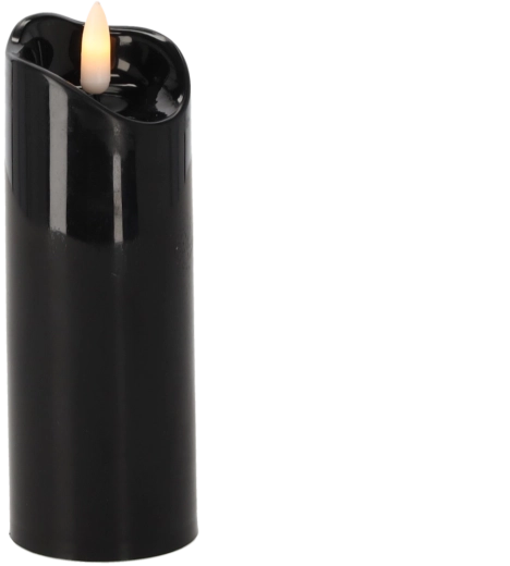 Elegantní černá LED svíčka o rozměrech 5 × 15 cm vytváří příjemnou atmosféru bez kouře a rizika otevřeného plamene. Je bezpečná, bezúdržbová a skvěle se hodí jako dekorace do interiéru i na hřbitovní aranžmá.