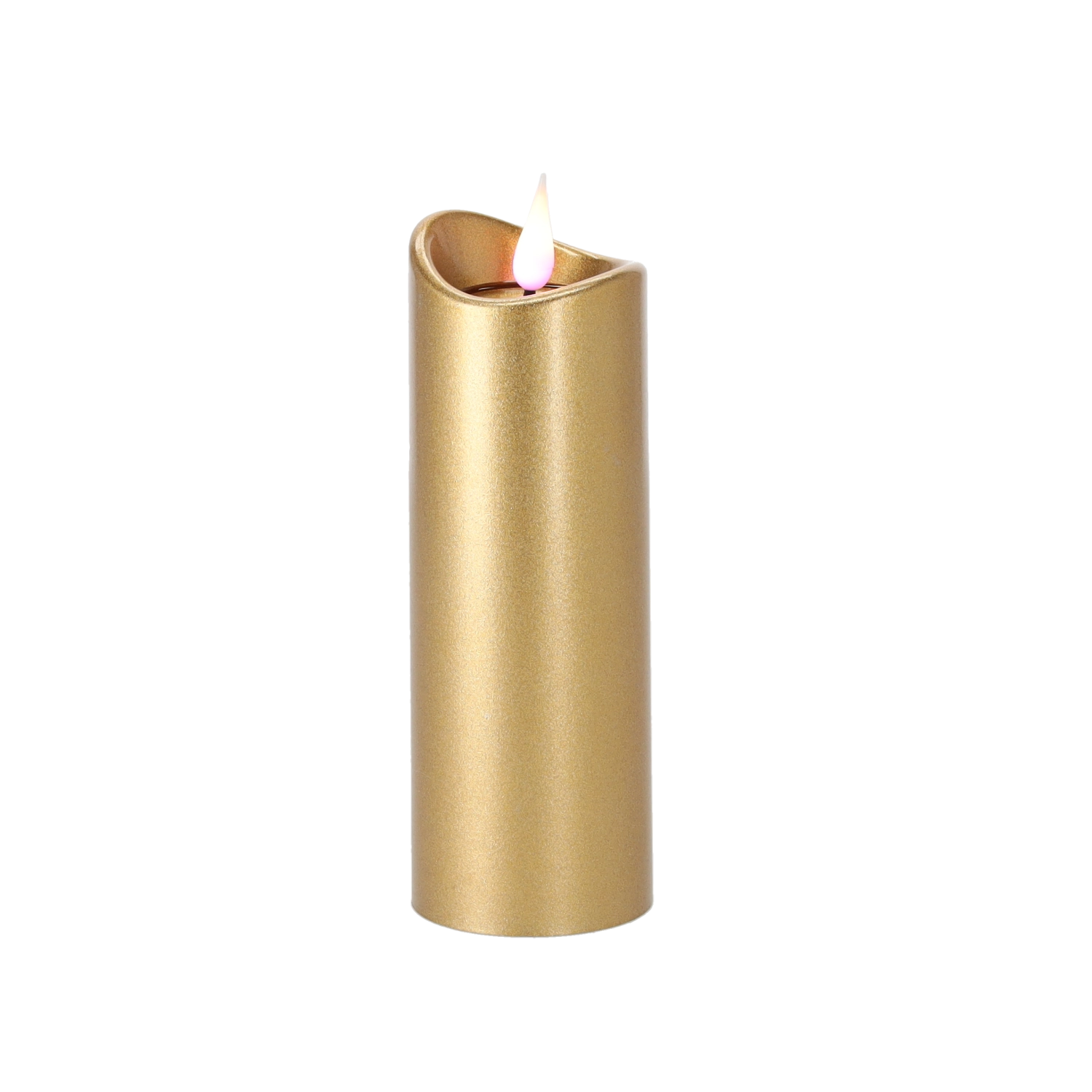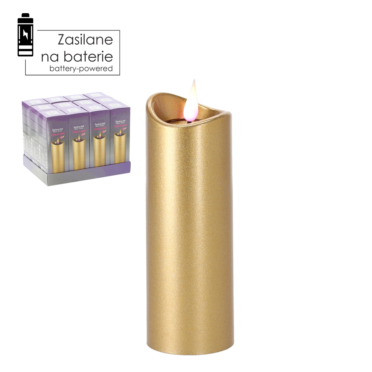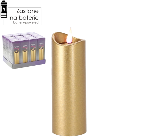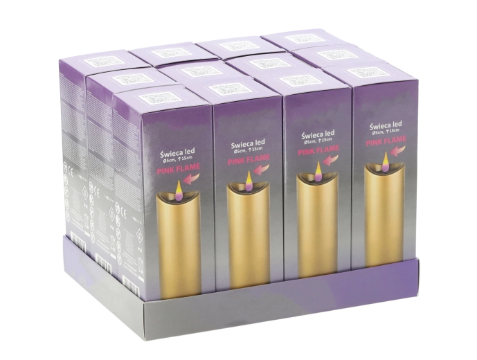 Elegantní LED svíčka o rozměrech 5 × 15 cm v luxusní zlaté barvě s efektem růžového plamene. Nabízí bezpečné, dlouhotrvající a energeticky úsporné osvětlení díky napájení na baterie, které jsou součástí balení. Skvělá dekorace do interiéru i na pietní místa.