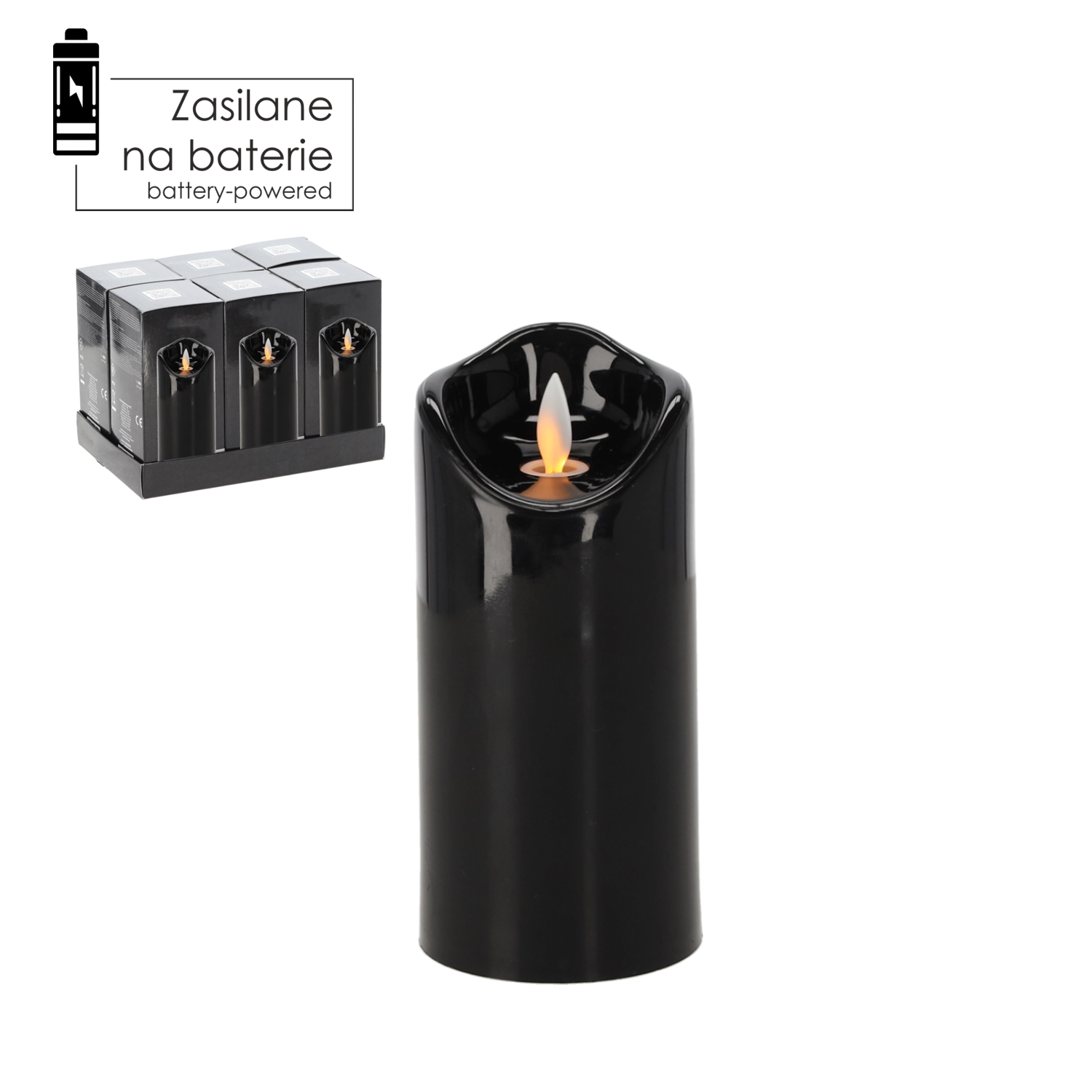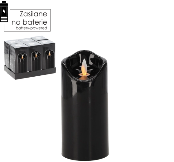 LED svíčka s pohyblivým plamenem 7 × 15 cm černá