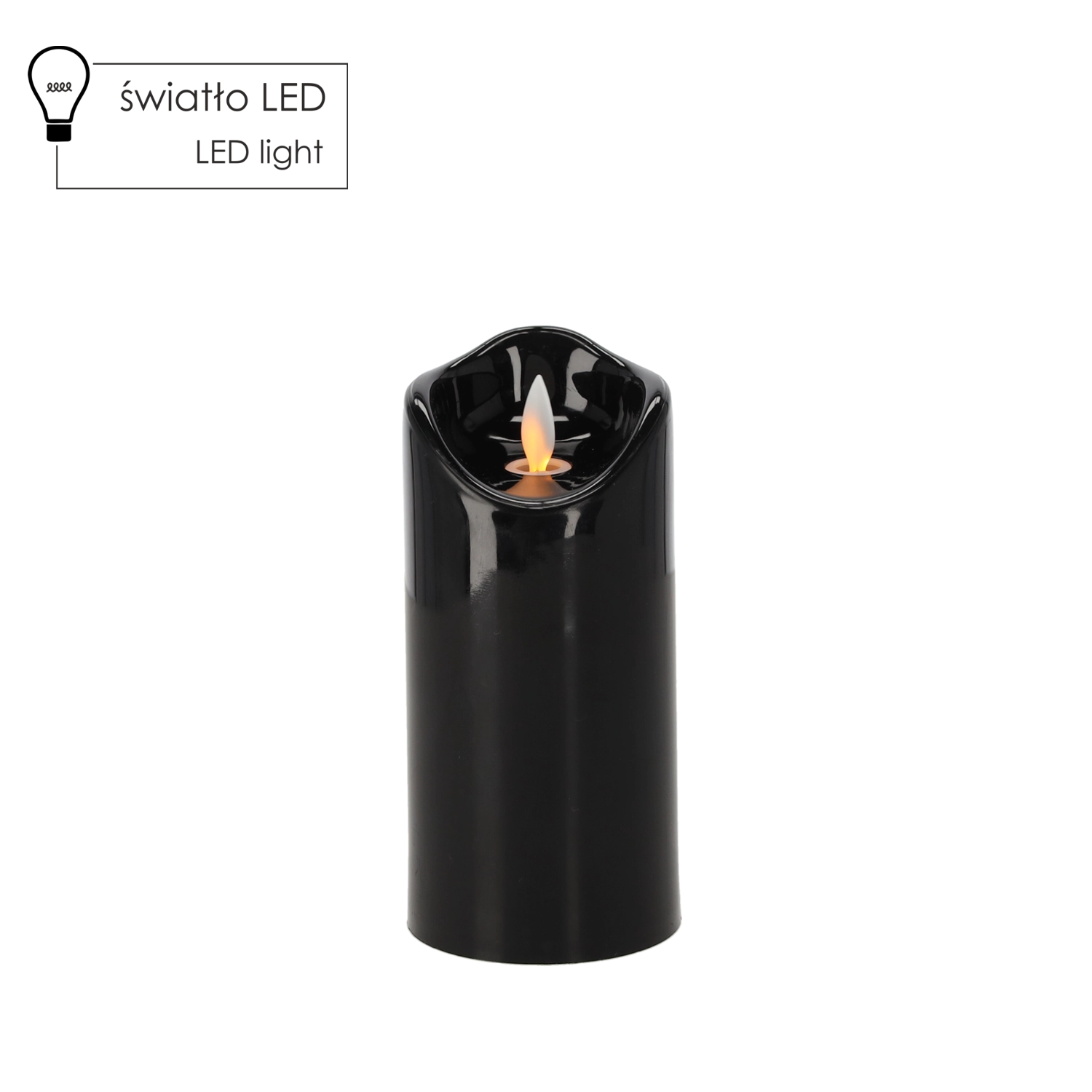 Elegantní LED svíčka v černé barvě o rozměrech 7 × 15 cm nabízí realistický pohyblivý plamen, který věrně napodobuje světlo skutečné svíčky. Je bezpečná, bezúdržbová a ideální pro dekoraci interiéru i pietních míst bez kouře a nepořádku.
