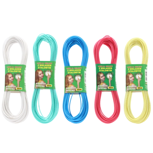 Šňůra je vhodná pro použití doma, na balkoně i na zahradě. Ocelové jádro zajišťuje stabilitu a nosnost, zatímco PVC povrch chrání prádlo před ušpiněním a dobře odolává dešti, mrazu i UV záření.