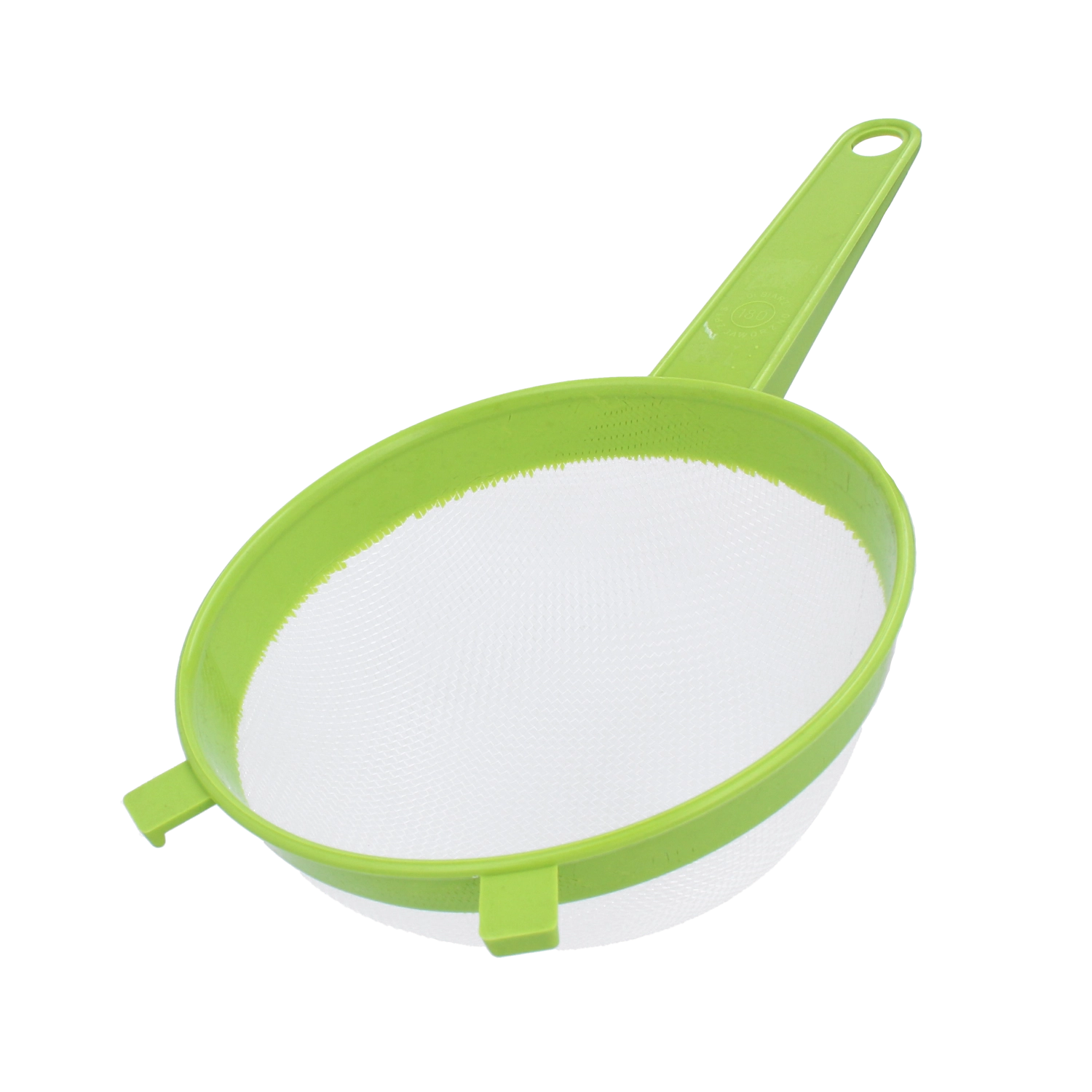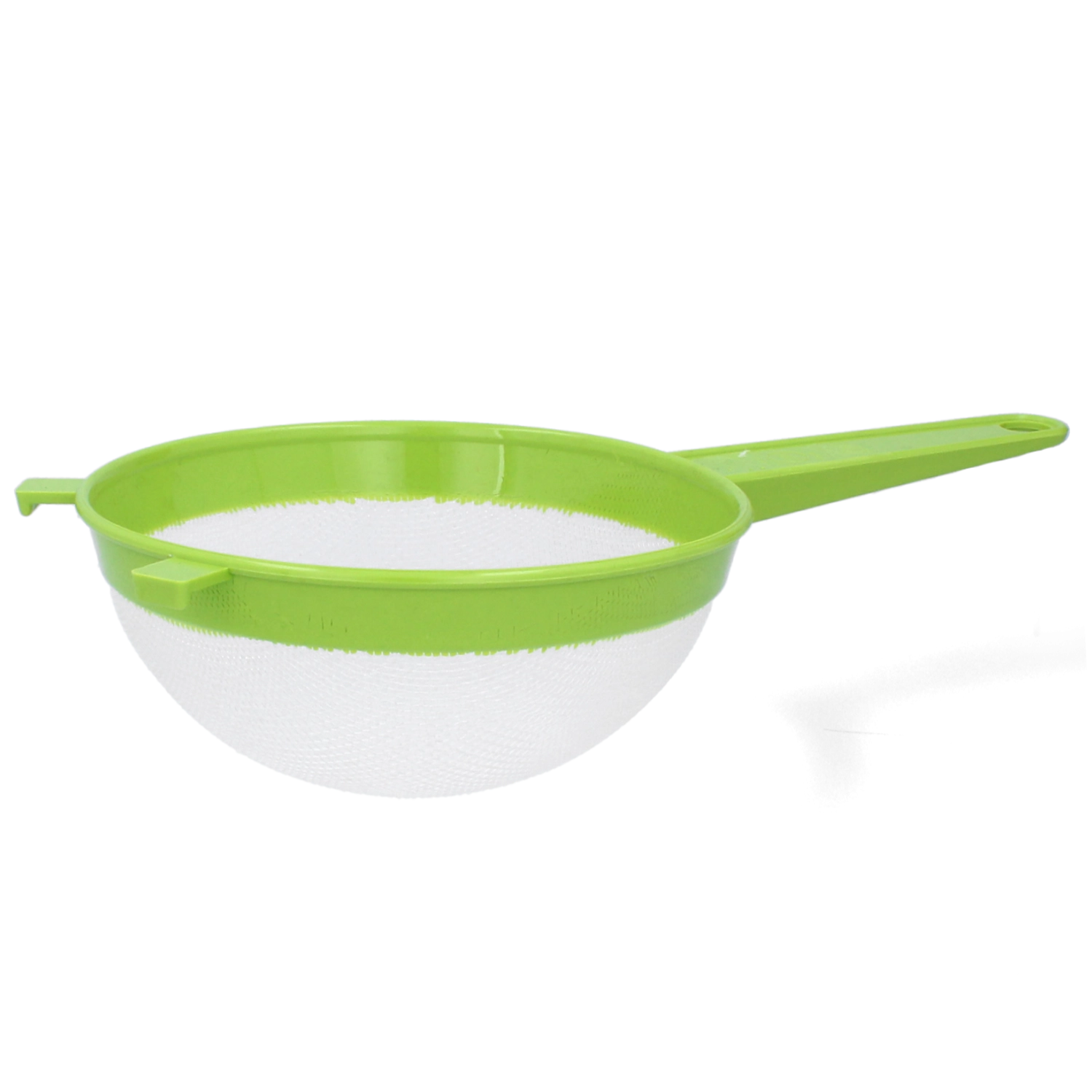Praktické kuchyňské sítko s kulovitou miskou o průměru 18 cm usnadní každodenní přípravu jídla. Hodí se na proplachování ovoce a zeleniny, prosévání mouky a cukru i cezení tekutin. Díky ergonomické rukojeti a stabilním háčkům jej snadno uchytíte na hrnec či misku. Lehká a odolná plastová konstrukce se snadno udržuje a jemná síťovina s oky cca 1,3 mm zajistí účinné oddělení pevných částic.