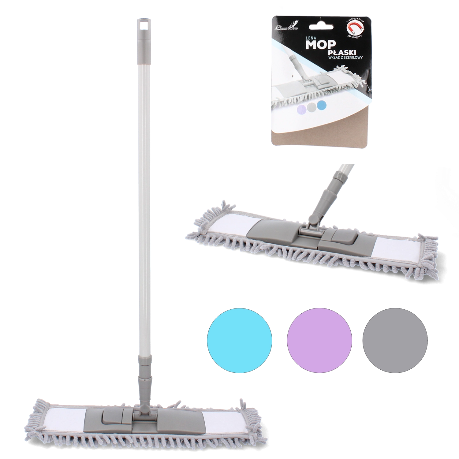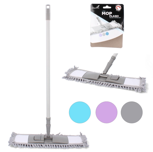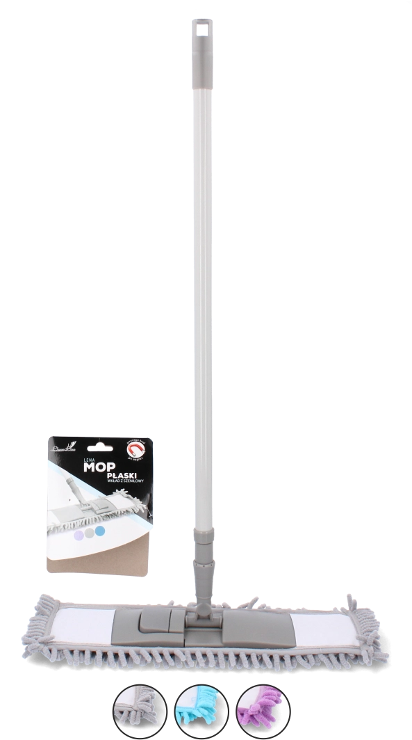 Plochý mop s chenille vláknem je praktický pomocník pro rychlý a šetrný úklid podlah. Díky vysoké absorpci a jemným chenille třásním účinně zachytává prach nasucho a při mokrém čištění si poradí i s odolnými skvrnami bez chemie. Tenký plochý profil se snadno dostane pod nábytek a do rohů, zatímco teleskopická kovová násada 65–116 cm zajistí pohodlné nastavení délky pro každého.