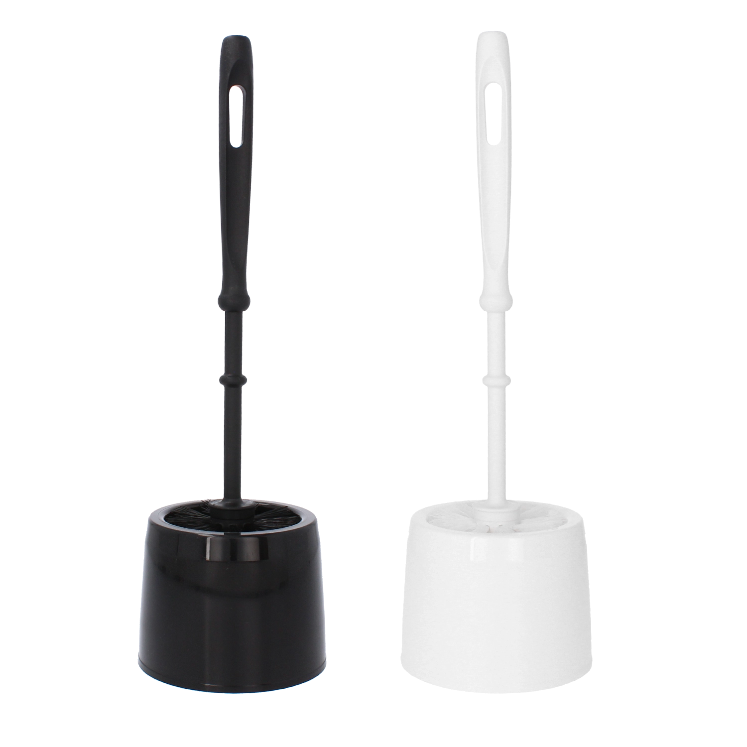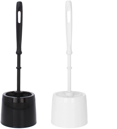 - Toaletní kartáč a bílý plastový stojan