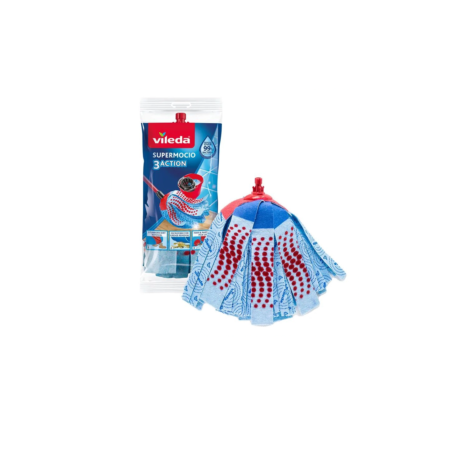 Vylepšete svůj úklid s náhradní hlavicí Vileda SuperMocio 3Action Velour, která kombinuje tři zóny pro maximální účinnost. Díky unikátní struktuře vláken spolehlivě odstraní i odolné skvrny, přitom je šetrná k podlahám. Citronový tvar snadno dosáhne do rohů a úzkých míst, takže podlaha bude čistá od kraje ke kraji.