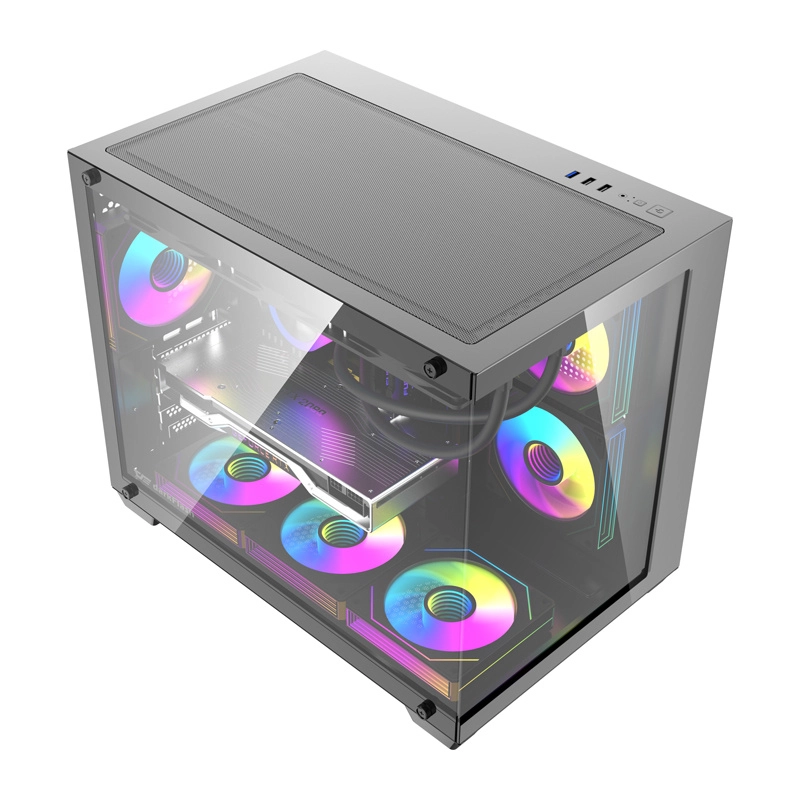 Vystavte svou sestavu v tom nejlepším světle. DarkFlash B275 Pro s bezrohovým designem a tvrzeným sklem poskytuje čistý 270° pohled na komponenty. Šest předinstalovaných 120mm ventilátorů a promyšlené průduchy zajišťují plynulé proudění vzduchu a spolehlivý odvod tepla i při náročném hraní nebo tvorbě obsahu.