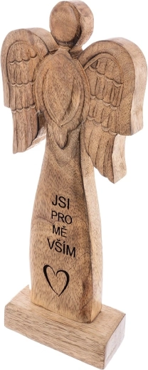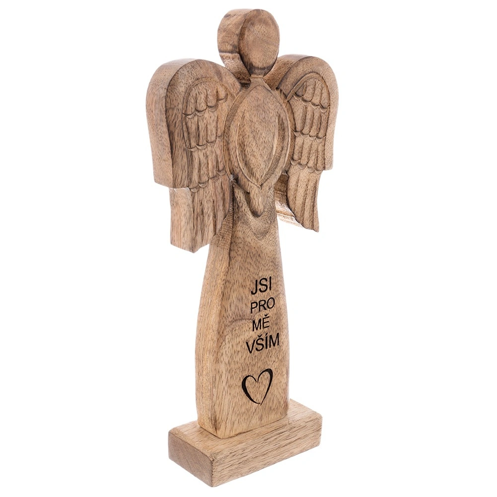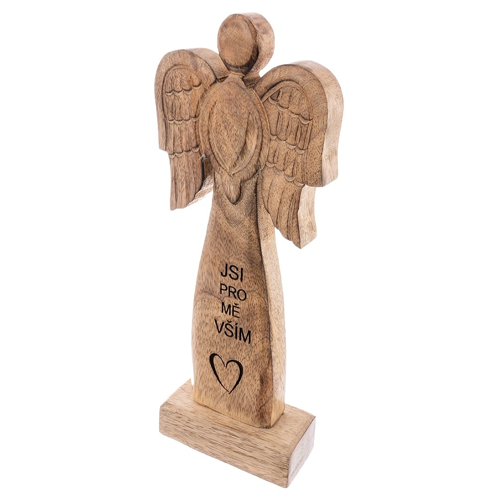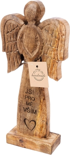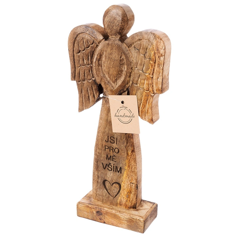 Tato působivá figurka anděla je vyrobena z přírodního dřeva mangovníku a doplněna kovovými křídly v černém provedení. Díky neutrálním barvám se snadno začlení do moderních i rustikálních interiérů a dodá jim jemný, symbolický akcent.