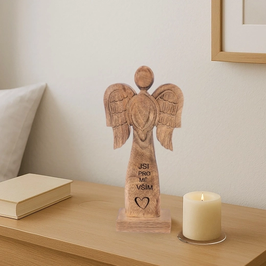 Anděl je univerzální dekorací – skvěle se hodí na polici, komodu či do vstupní haly. V zimním a svátečním období podtrhne atmosféru domova, ale díky nadčasovému designu jej využijete po celý rok. Je to také originální tip na dárek k narozeninám, svátku, při stěhování i k duchovním příležitostem.
