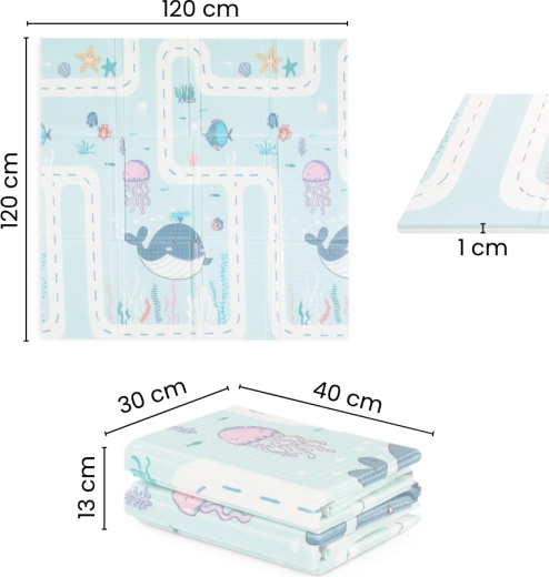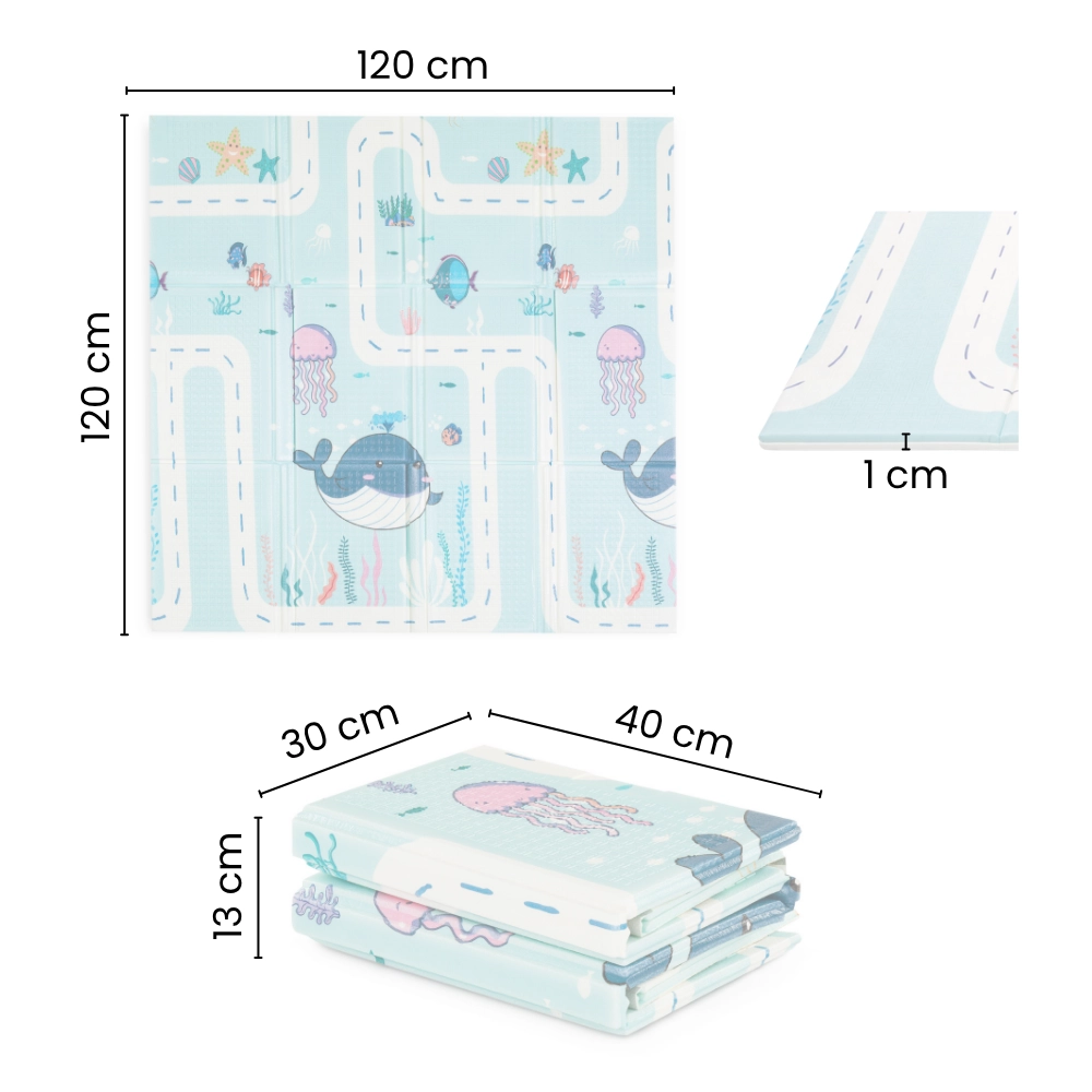 Oboustranná skládací hrací podložka z netoxické XPE pěny nabízí měkký a bezpečný povrch pro hru od narození. Má protiskluzovou úpravu, je voděodolná, snadno se čistí a výborně izoluje od chladu a nečistot. Díky nízké hmotnosti a rychlému skládání ji snadno přenesete v přiložené praktické tašce – ideální domů i na zahradu.