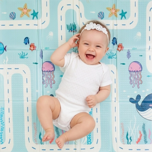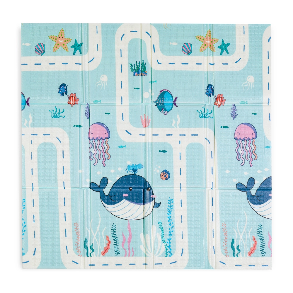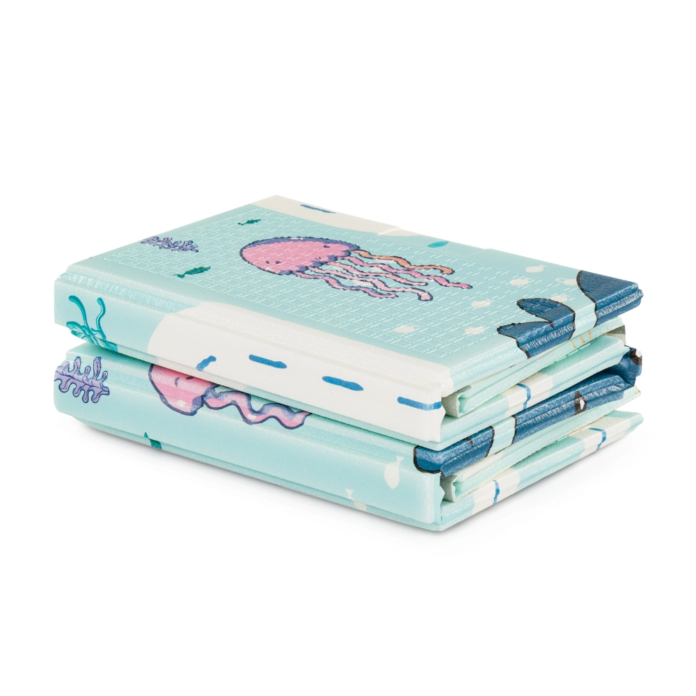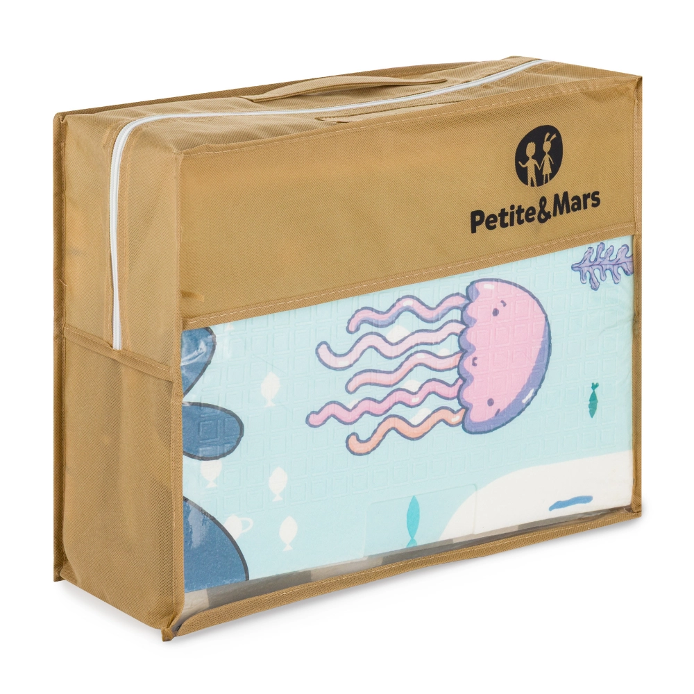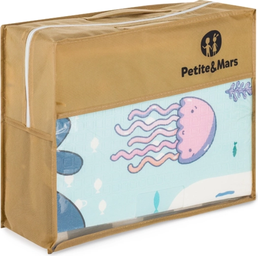 Podložka PETITE & MARS Campy S přináší dětem pohodlné a bezpečné místo pro hraní, lezení i první krůčky. Oboustranný potisk s motivy Ocean a Arabesca oživí každý dětský pokoj a zároveň se hodí do moderního interiéru. Povrch s protiskluzovou úpravou pomáhá stabilitě dítěte a pěnové jádro z XPE materiálu tlumí nárazy a izoluje od studené podlahy.