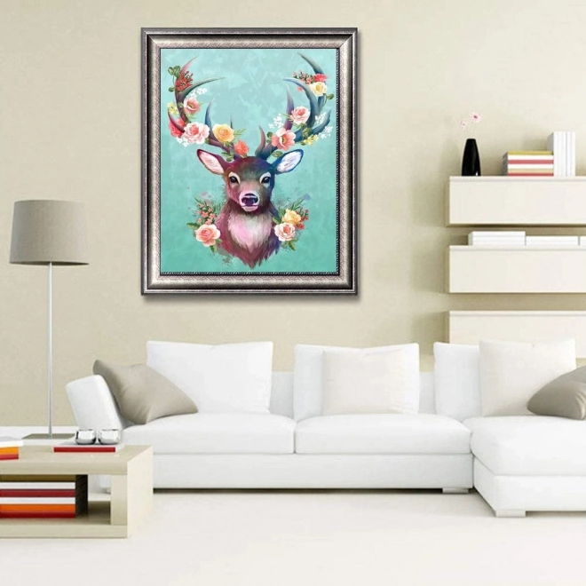 Detailní motiv jelena s květinami