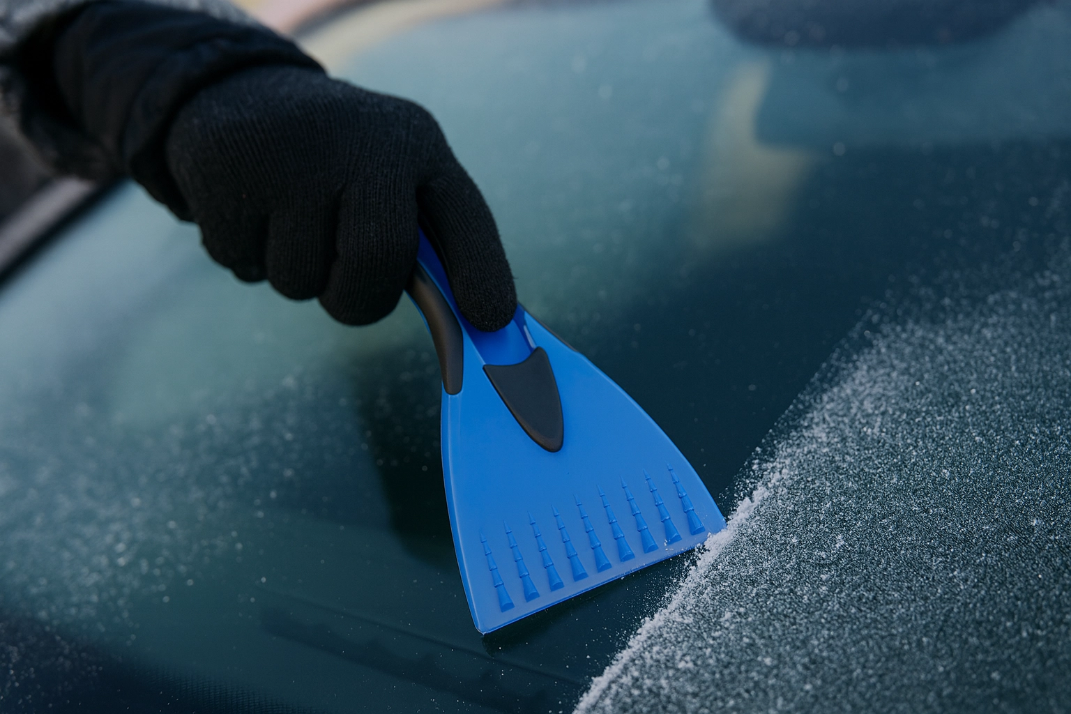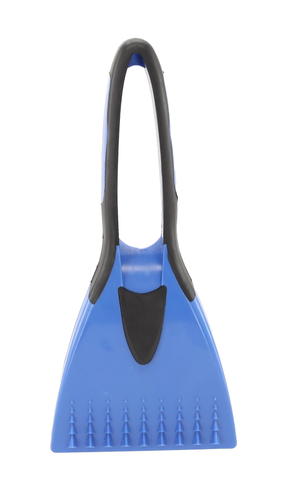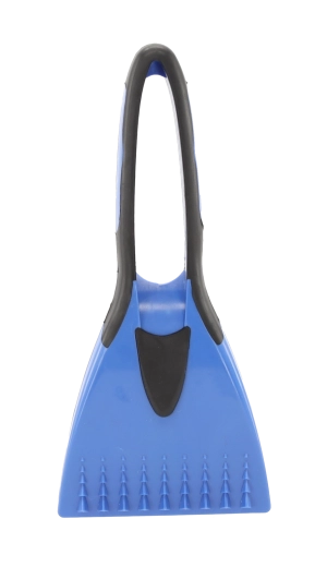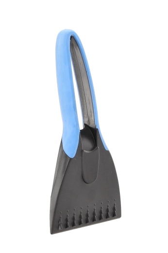 Zubaté zuby rychle naruší silnou vrstvu ledu, zatímco široká hladká hrana sklo během chvilky dočistí bez šmouh.
