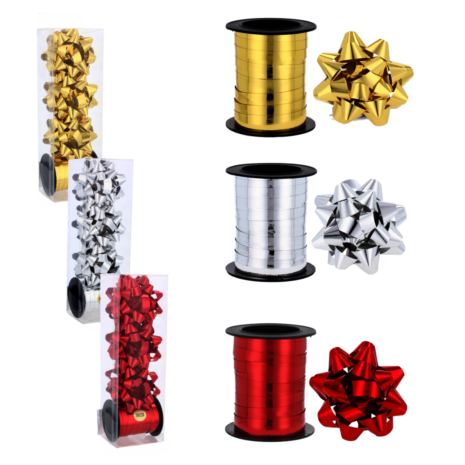 Vytvořte krásně zabalené dárky během chvilky. Tato univerzální sada kombinuje dlouhé úzké stuhy ideální pro převazování a dekorování spolu s hotovými mašličkami, které dodají dárku finální stylový akcent.