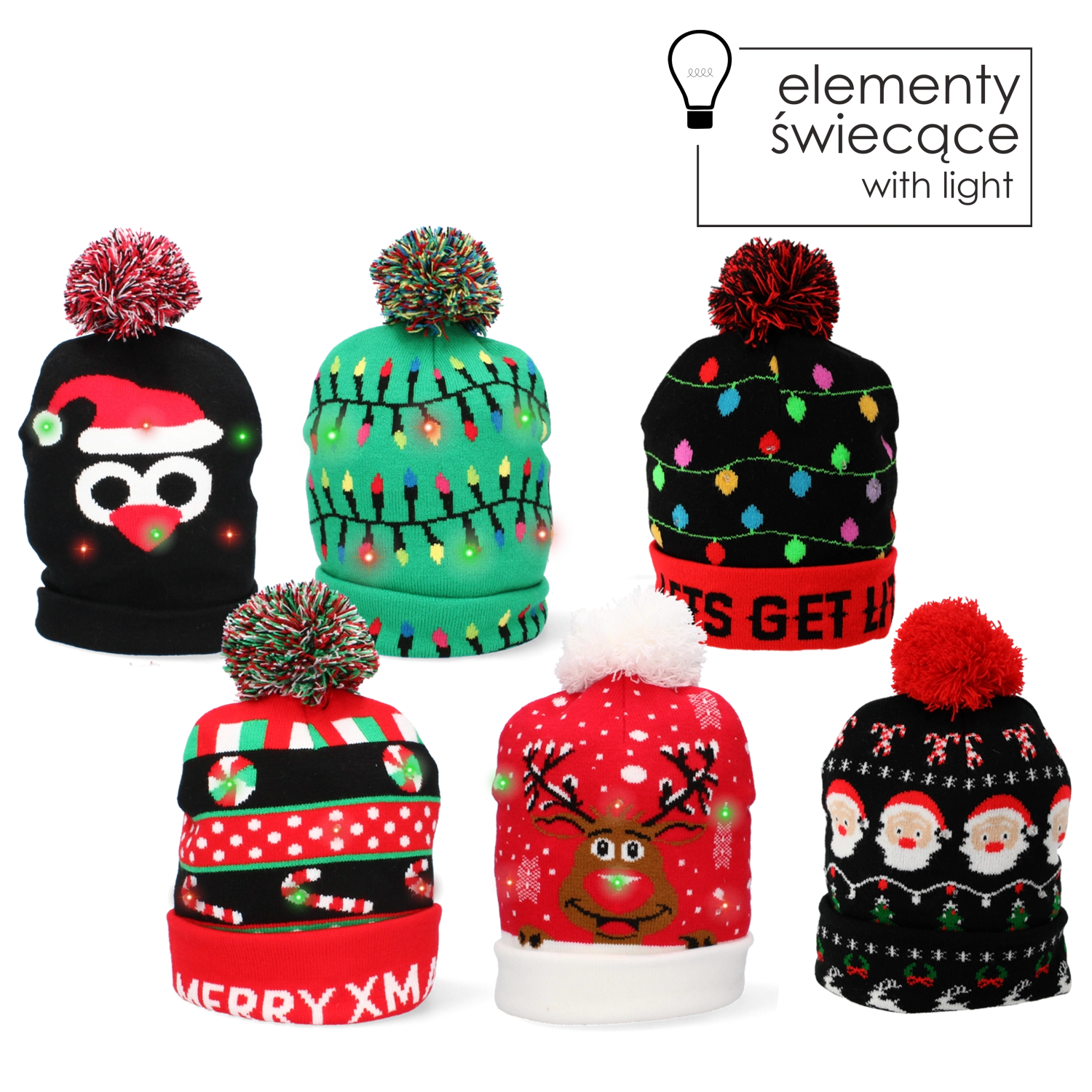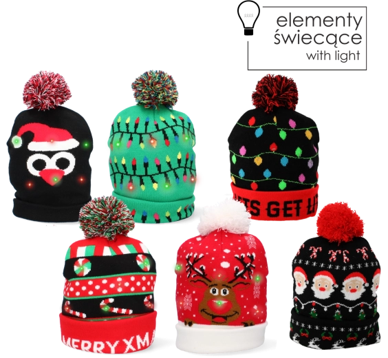 Hledáte originální doplněk na firemní večírek, rodinné focení nebo vánoční trhy? Mix vzorů v této sadě potěší každého – od čepic s nápisy jako MERRY XMAS, přes motivy sobů, Santy a světelných řetězů, až po kousky s LED podsvícením pro skutečný „wow“ efekt. Všechny čepice jsou z měkkého úpletu, hřejivé a příjemné na nošení.