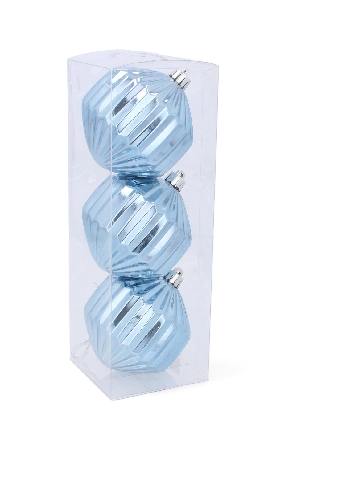 Sada tří ozdob v průhledné krabičce je připravena k okamžitému zavěšení a bezpečnému uložení po sezóně.