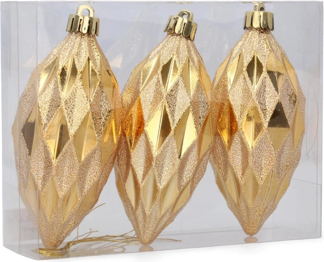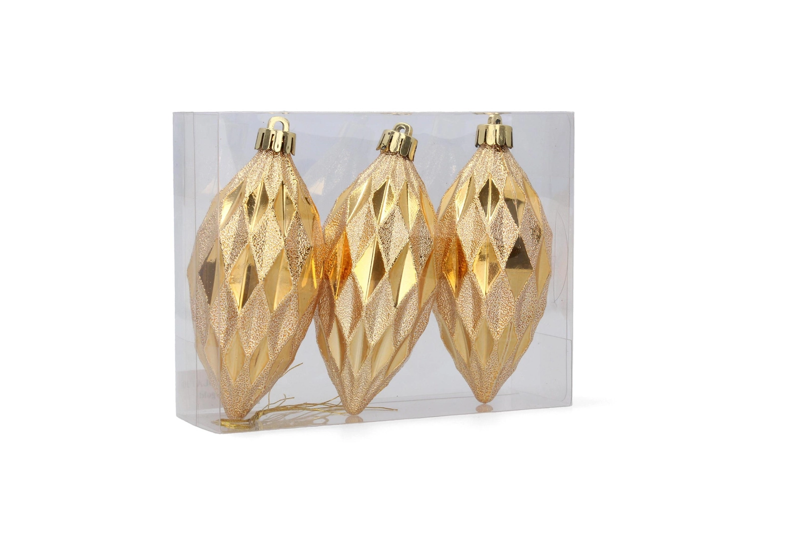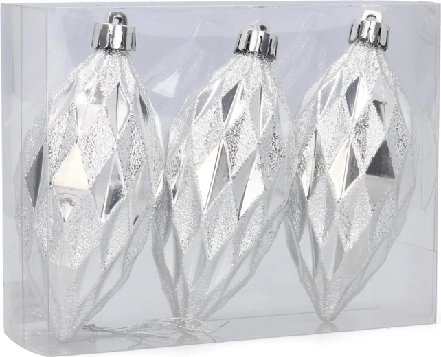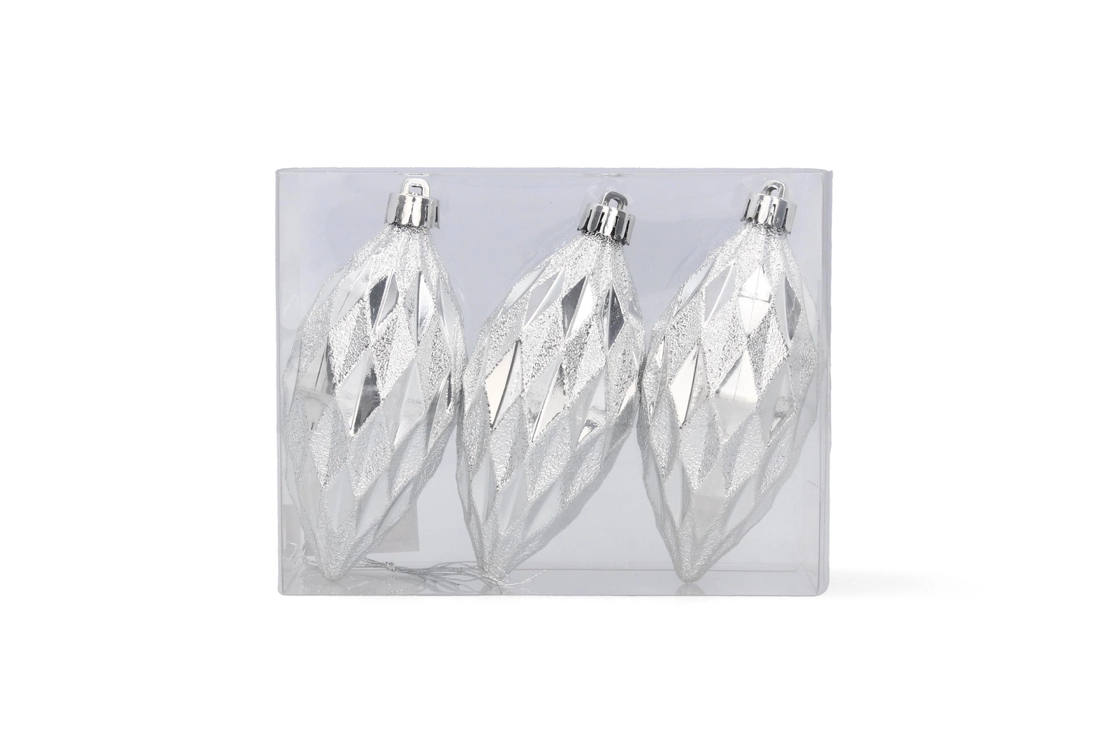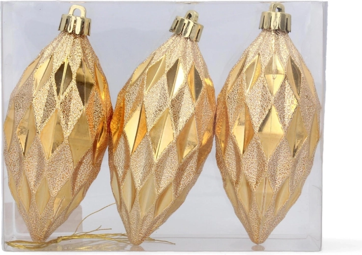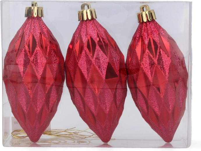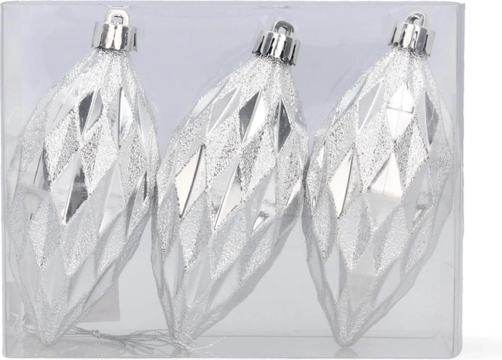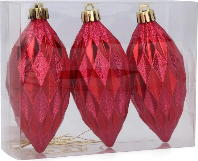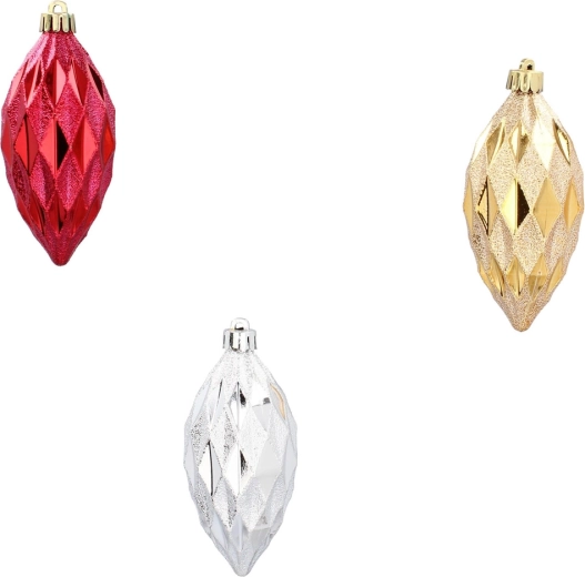 Vytvořte si doma atmosféru tradičních Vánoc se sadou tří podlouhlých ozdob v oblíbených barvách – červené, zlaté a stříbrné. Lesklý povrch dodá výzdobě jedinečný třpyt a zvýrazní světelné odrazy na vašem vánočním stromku.