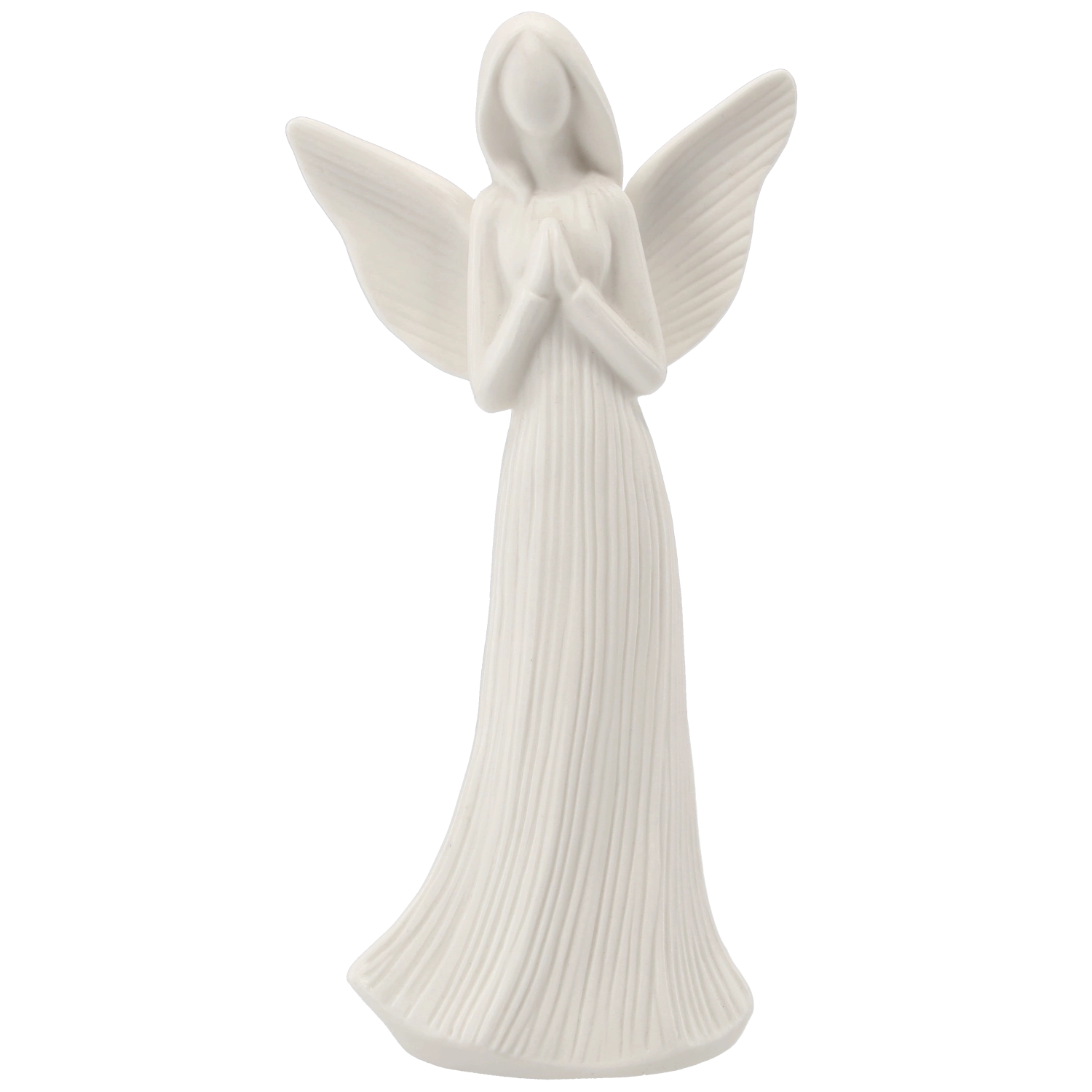 Matný povrch, elegantně skládané šaty a jemná křídla působí decentně, zatímco pevná základna zajišťuje bezpečné umístění na rovných plochách.