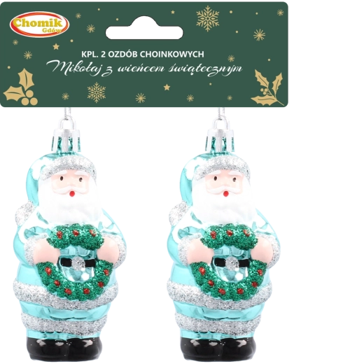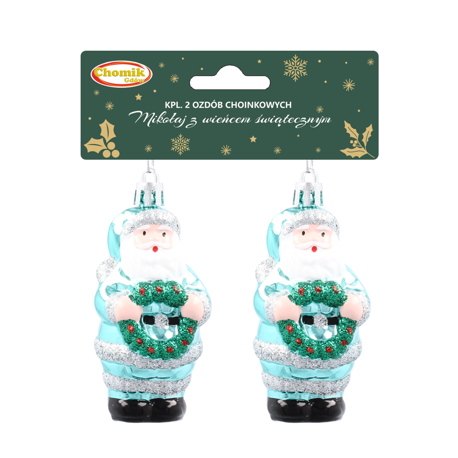 Zvýrazněte sváteční atmosféru půvabnou sadou dvou vánočních ozdob ve tvaru Mikuláše s věncem. Elegantní kombinace červené, zlaté a bílé barvy krásně ladí s ostatními dekoracemi a dodá interiéru teplo i kouzlo Vánoc.